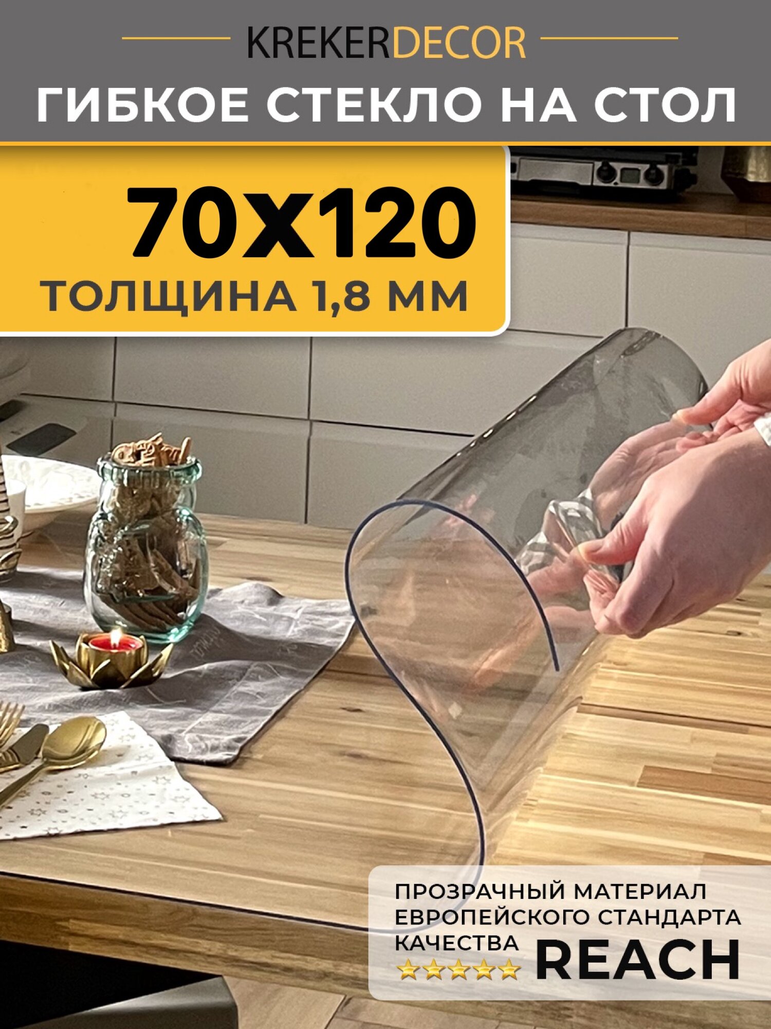 Купить Скатерть на стол гибкое стекло, 120х70 см, 1.8 мм, прозрачная