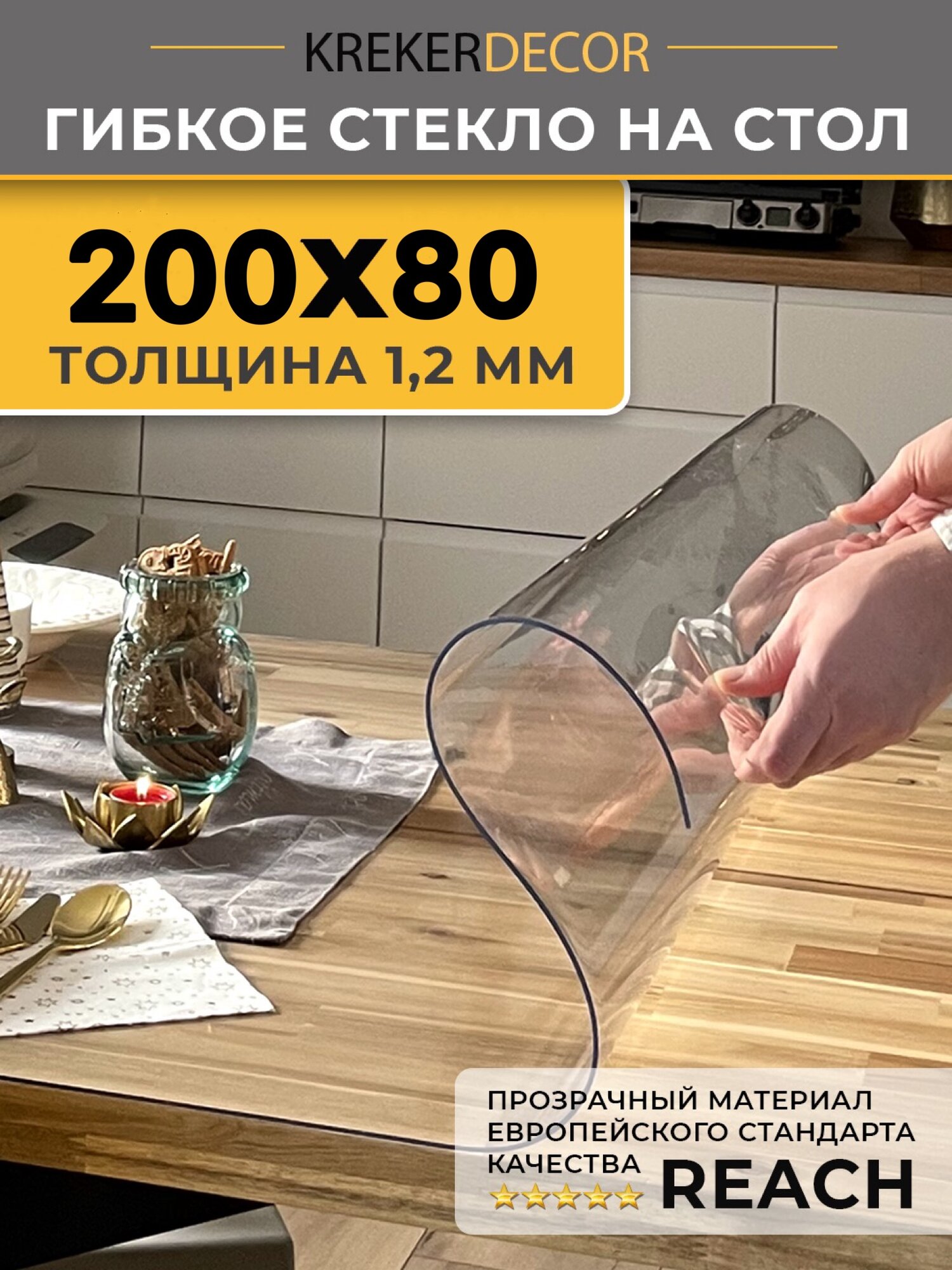 Купить Скатерть на стол гибкое стекло, 200х80 см, 1.2 мм, прозрачная