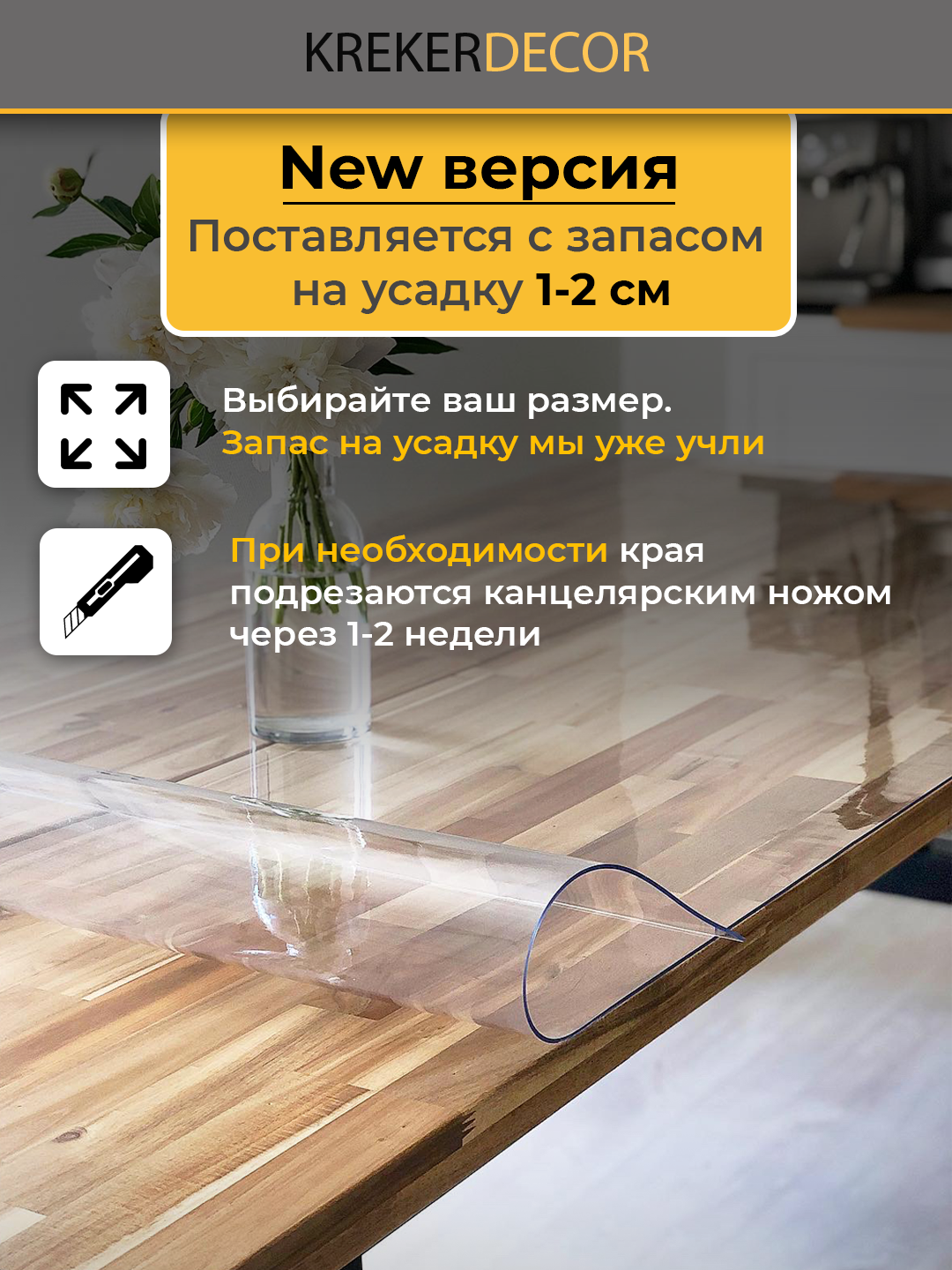 СохранитьСкатерть на стол гибкое стекло, 80х90 см, 1.2 мм, прозрачная интересное:
