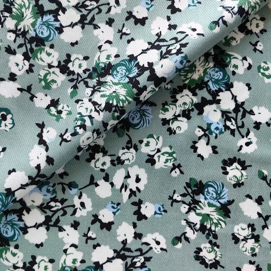 Купить Ткань штапель твил, плательная вискоза для шитья юбки, платья, рубашки, мятный с розочками, 1 м х 148 см