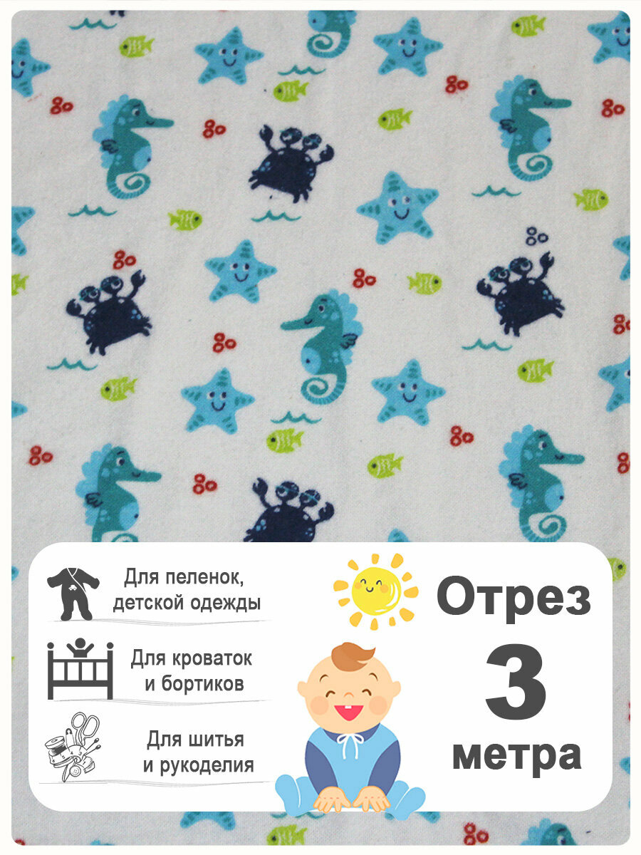 Фланель детский рисунок ткань для шитья 4 метра "Морской конек"