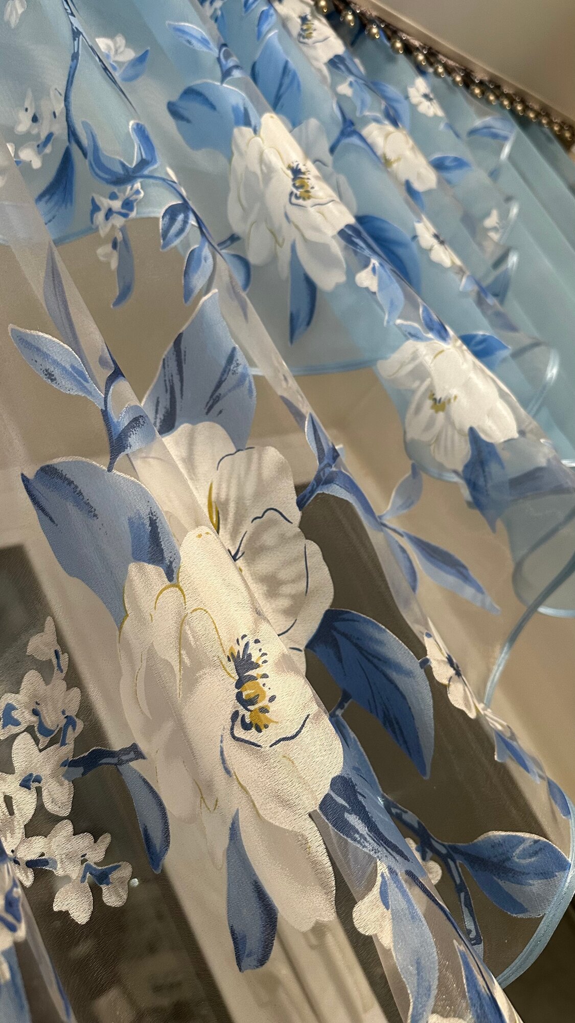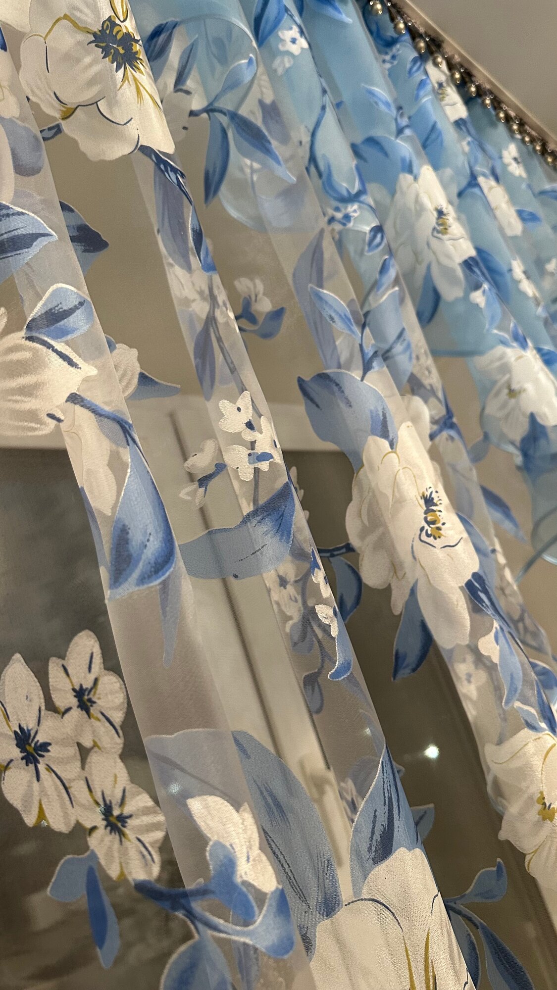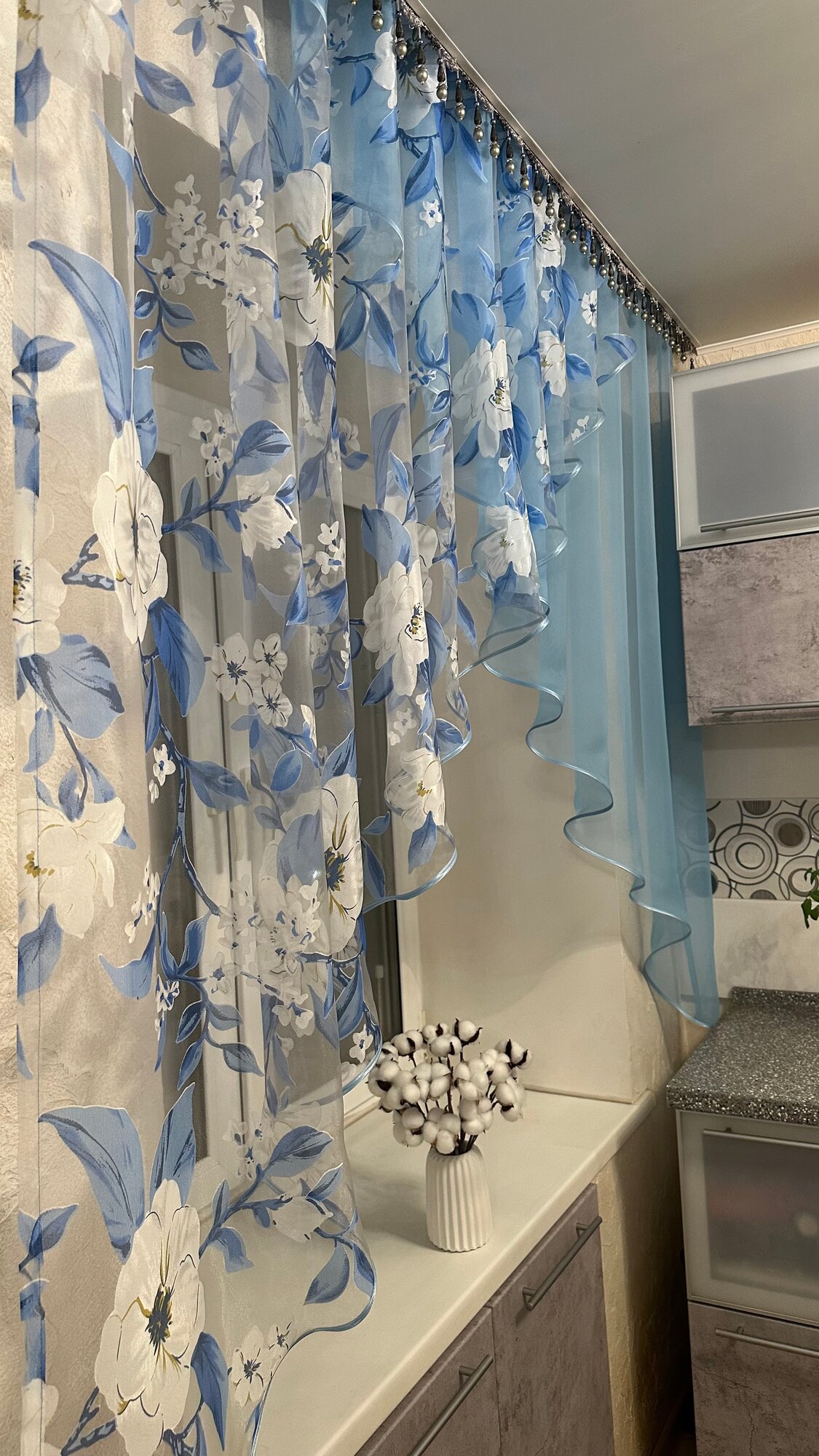 Купить Кухонная шторка голубые цветы, ширина 3м, высота 1,7м