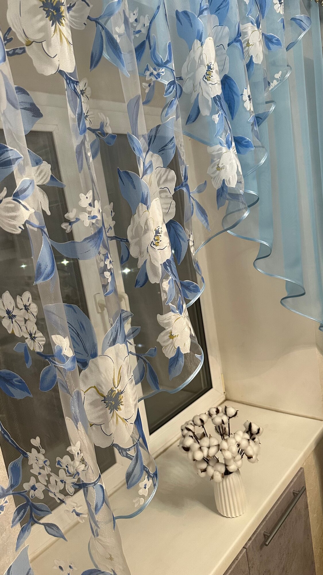 Ниже Вы можете прочитать отзывы на Кухонная шторка голубые цветы, ширина 3м, высота 1,7м, ознакомится с подробными характеристиками, посмотреть интересные обзоры и фотографии на Кухонная шторка голубые цветы, ширина 3м, высота 1,7м.