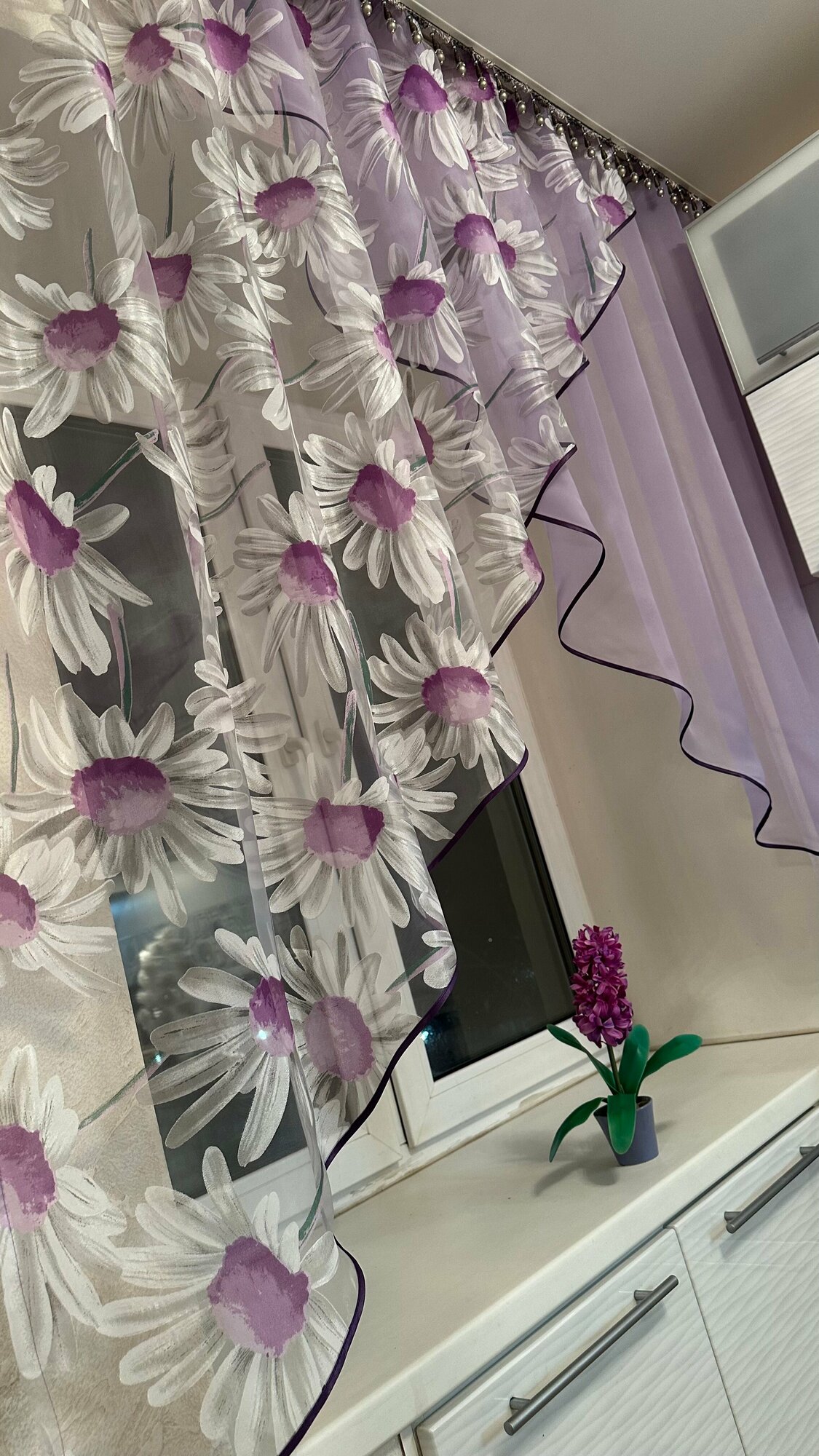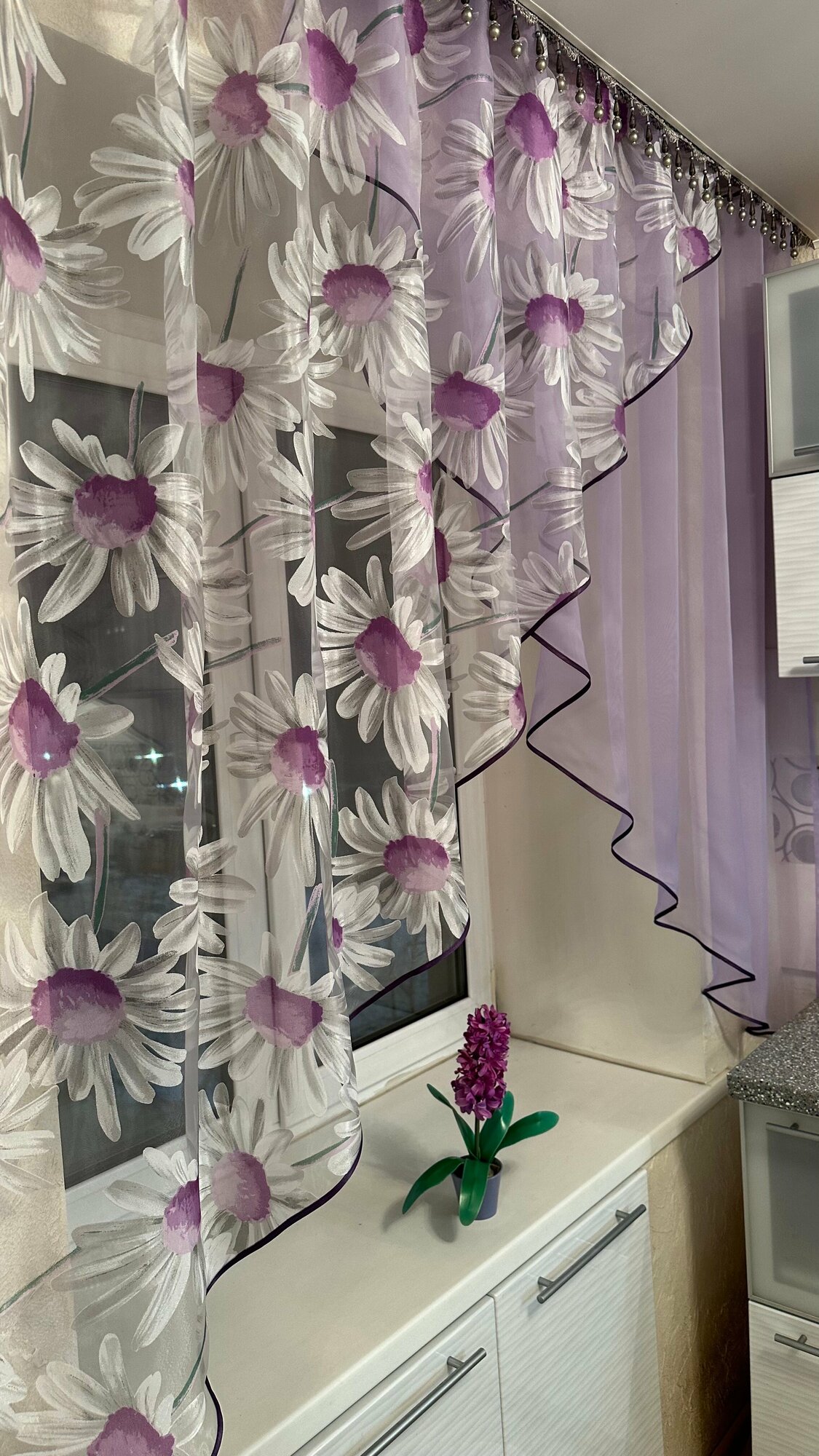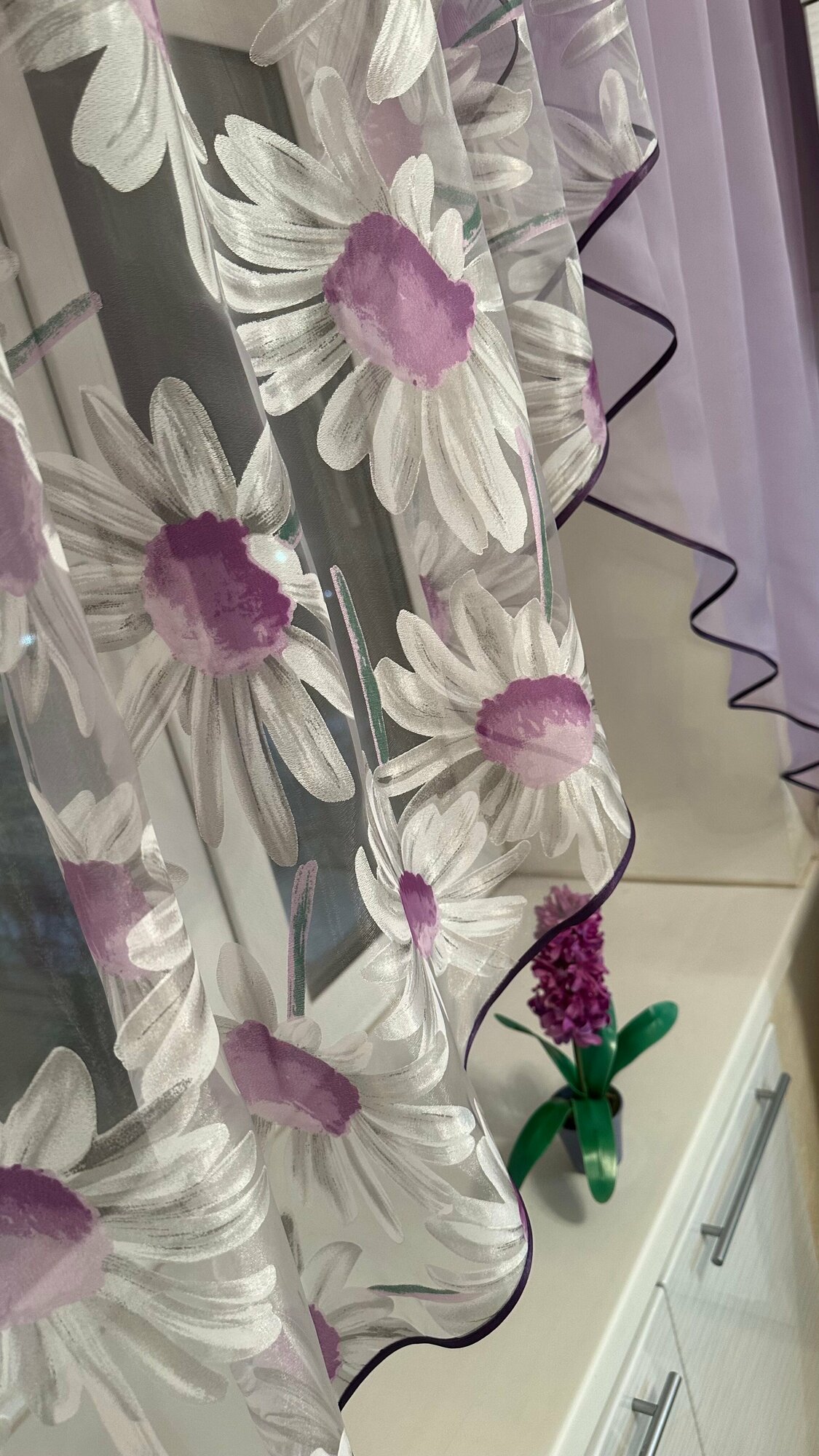 СохранитьКухонная шторка сиреневые ромашки, ширина 3м, высота 1,7м интересное: