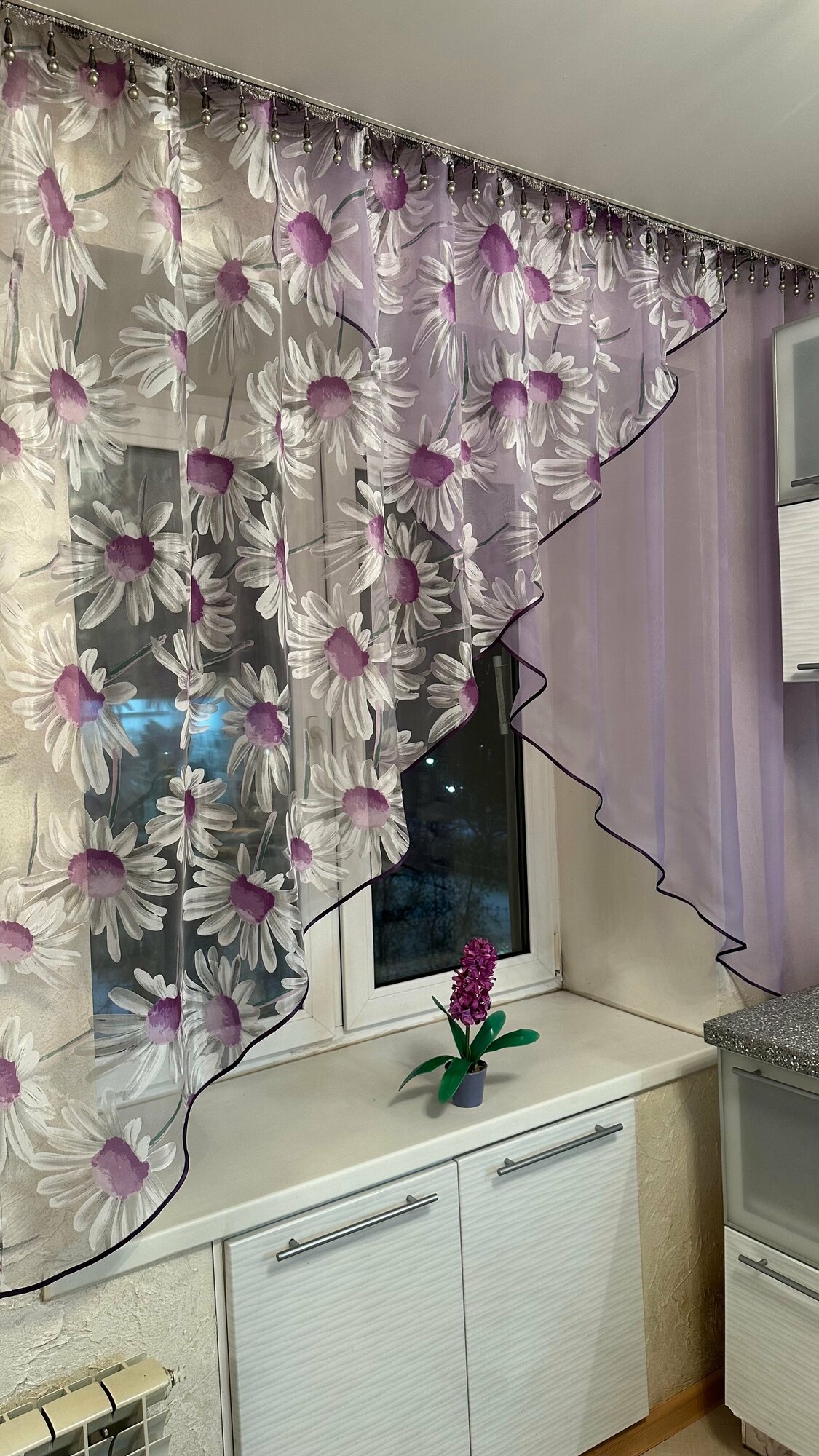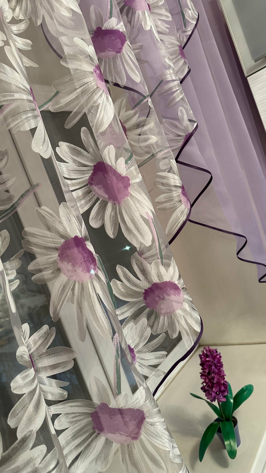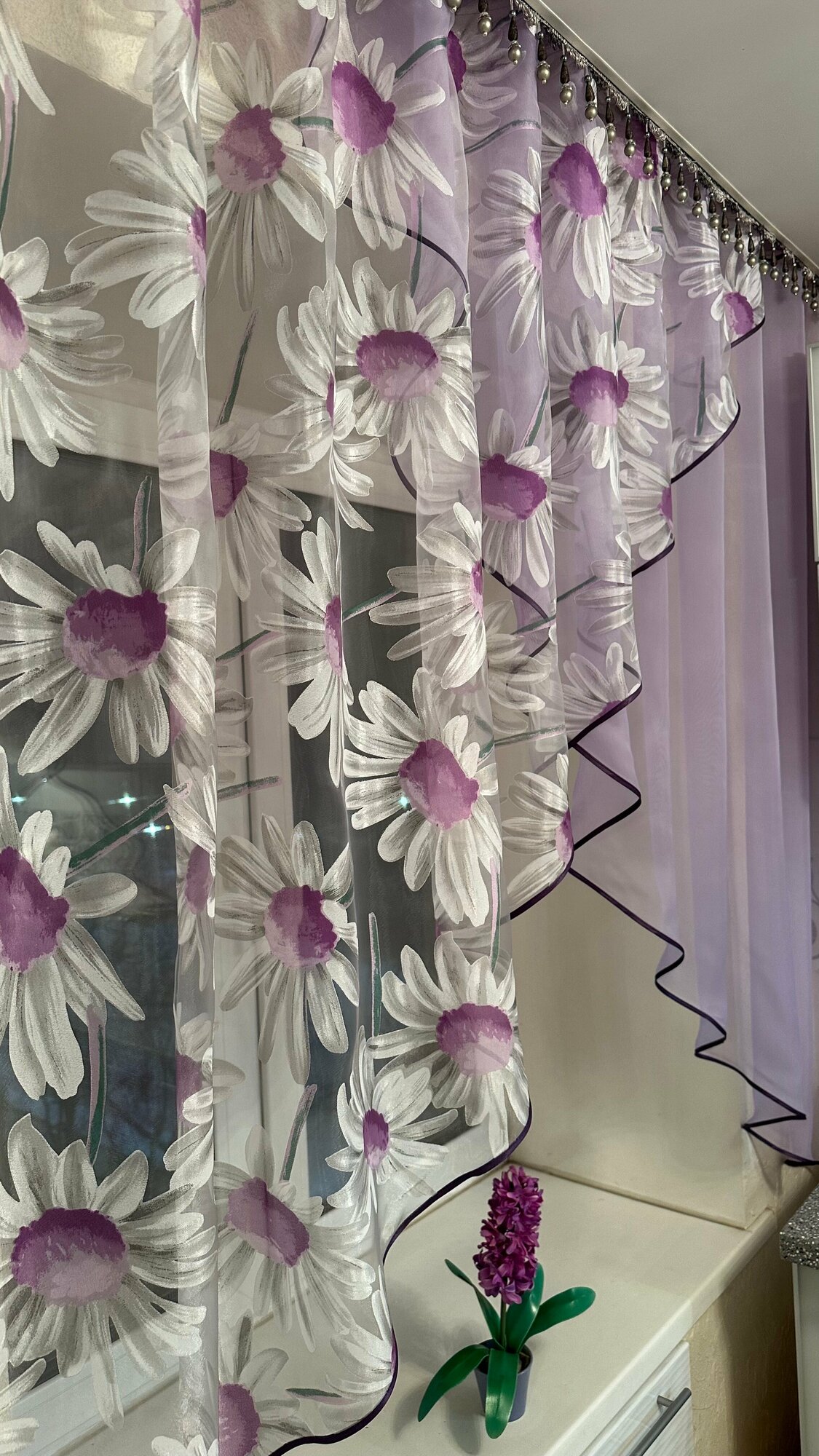 СохранитьКухонная шторка сиреневые ромашки, ширина 3м, высота 1,7м интересное: