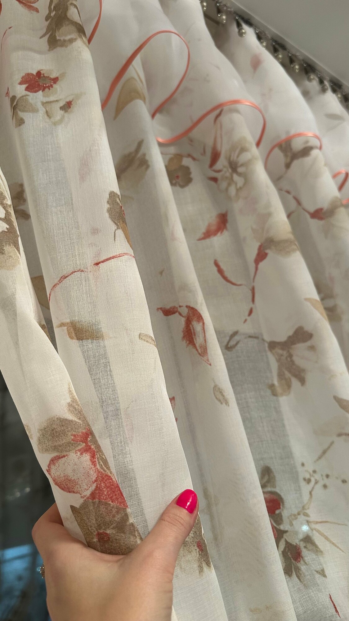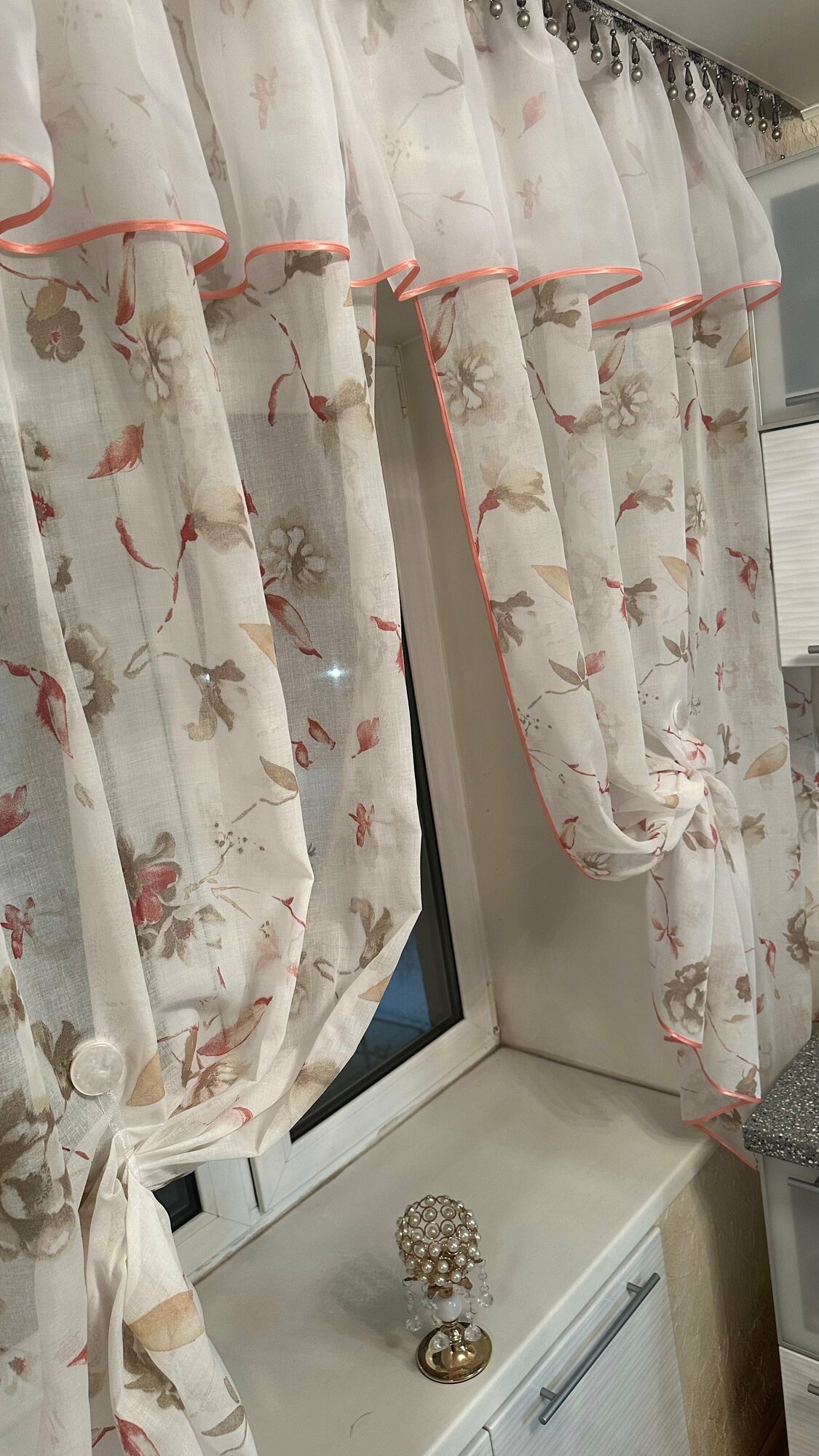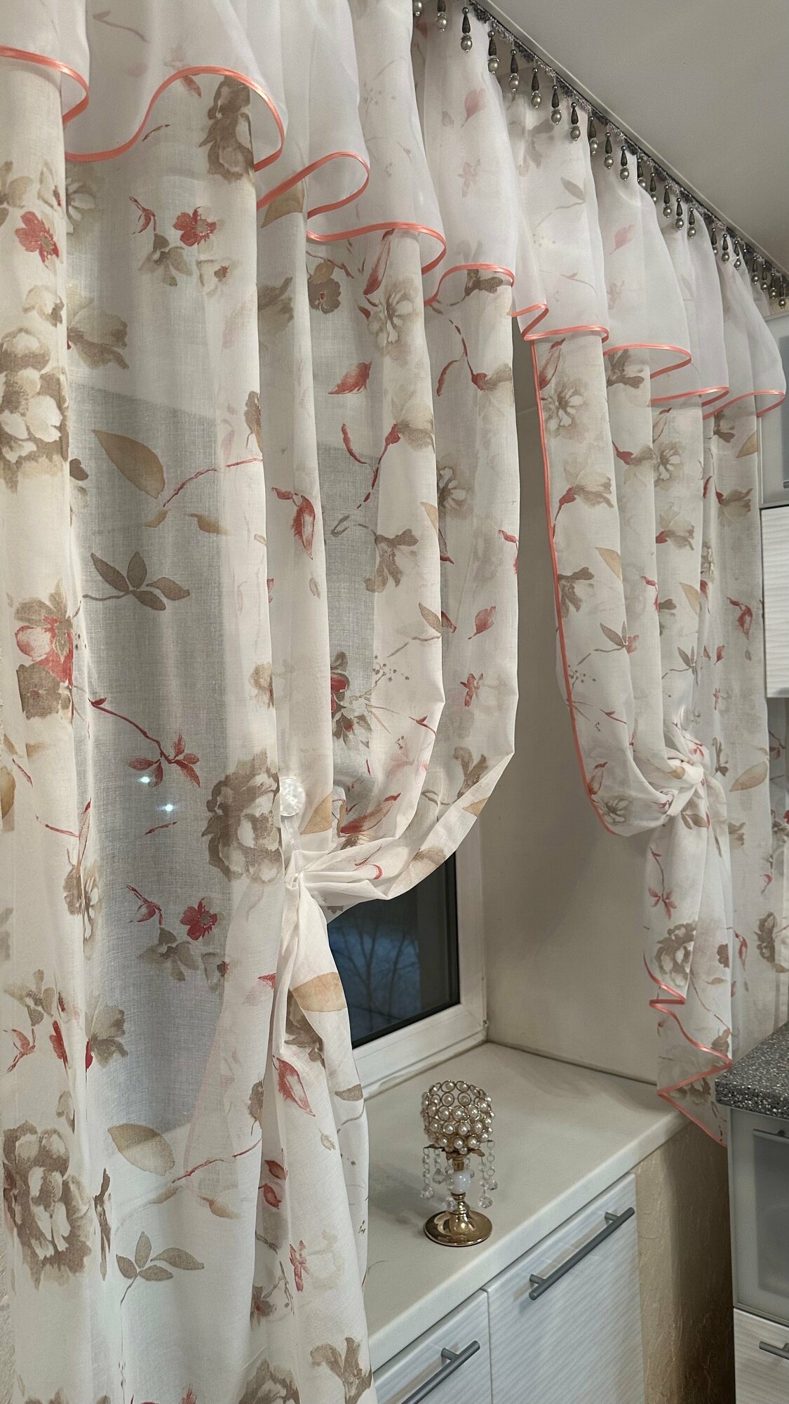 Кухонная шторка коралловые цветы, ширина 3м, высота 1,7м