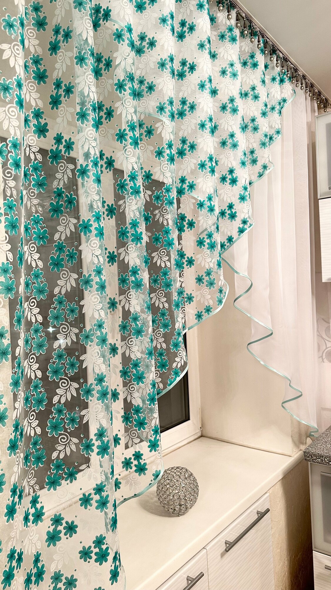 СохранитьКухонная шторка россыпь цветов бирюзовые, ширина3м, высота 1,7м интересное: