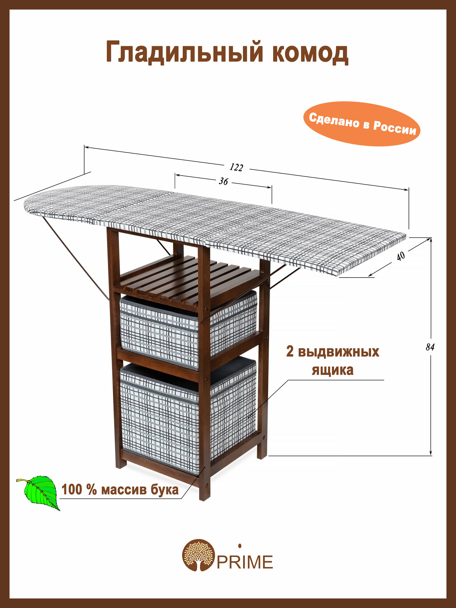 Гладильный комод на 2 ящика PRIME ДхШ: 44х40 см цвет орех/ткань клетка интересное: