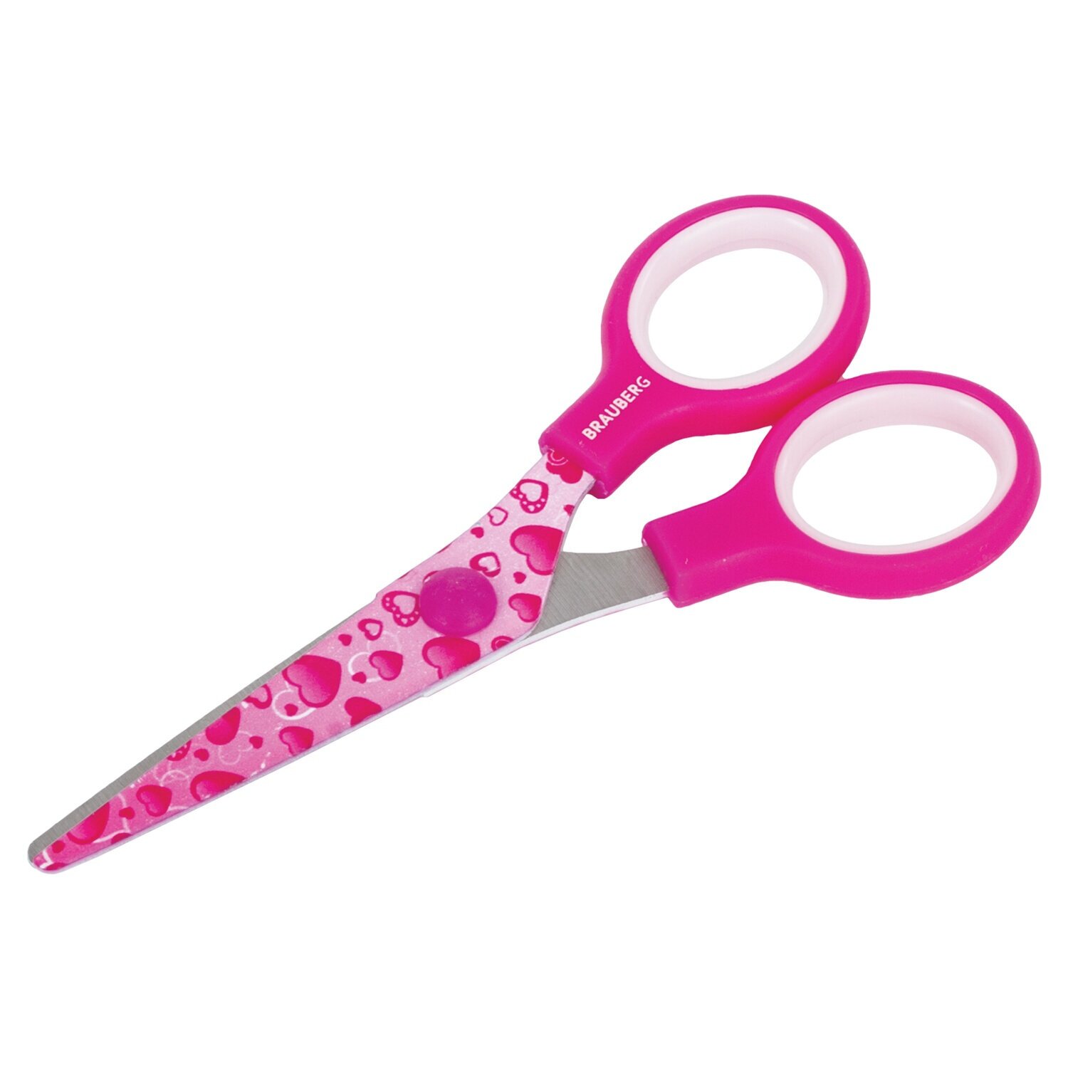 Купить Ножницы канцелярские универсальные для бумаги и картона Brauberg "Kid Series", с цветной печатью "Сердечки", 130 мм, малиновые