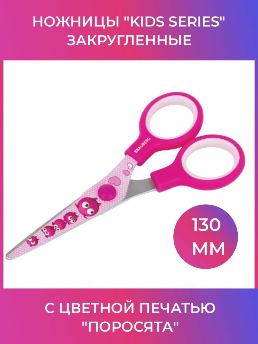 СохранитьНожницы 130 мм с цветной печатью "Поросята", розовые, закругленные, BRAUBERG KIDS, 232272, 2шт в компл. интересное: