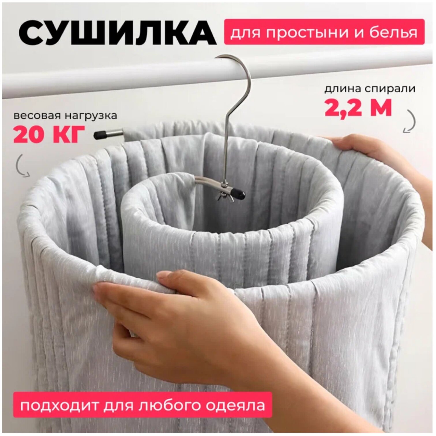 Многофункциональная спиральная вешалка/ Сушилка для белья 45 см х 40 см х 15 см/ Спиральный полотенцесушитель из нержавеющей стали в диаметре 45 см/ для сушки постельного, одеяла, полотенец интересное: