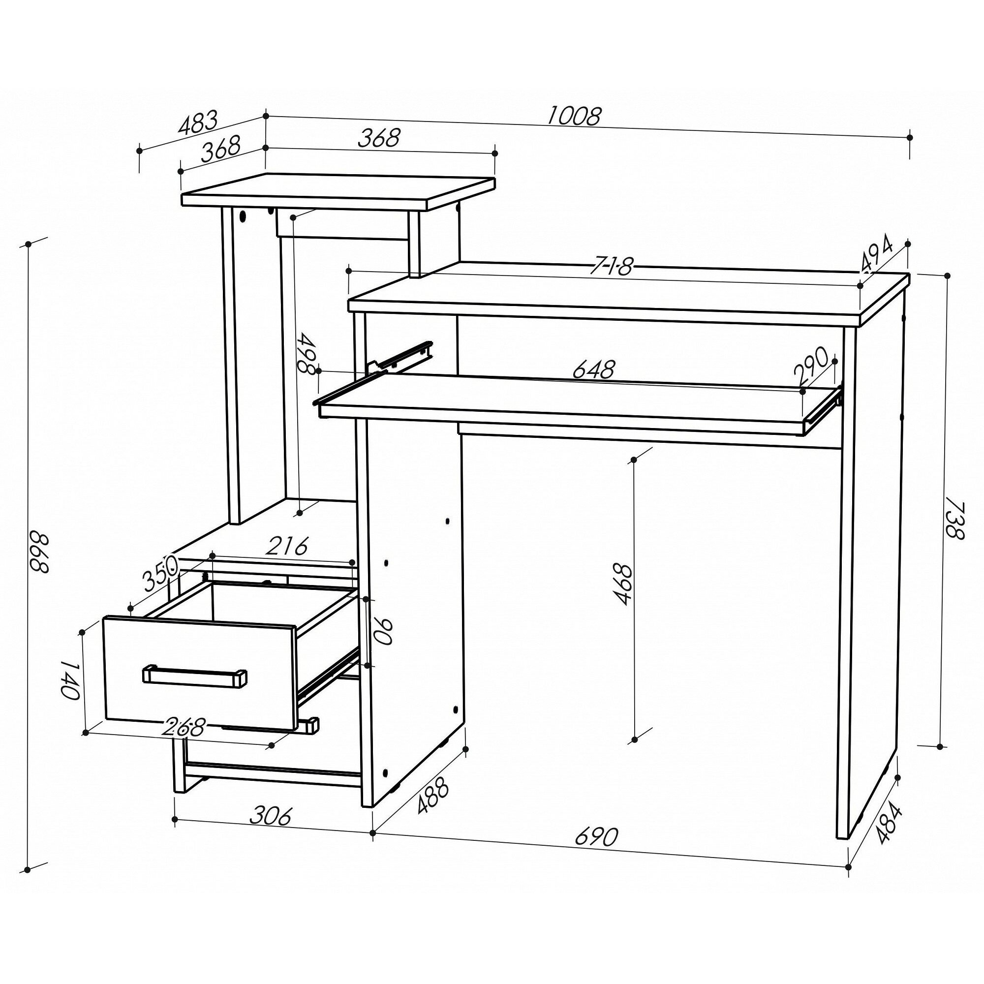 | Особенности | отделение для системного блока, полка для клавиатуры, полка для принтера, с тумбой, с ящиком для хранения |