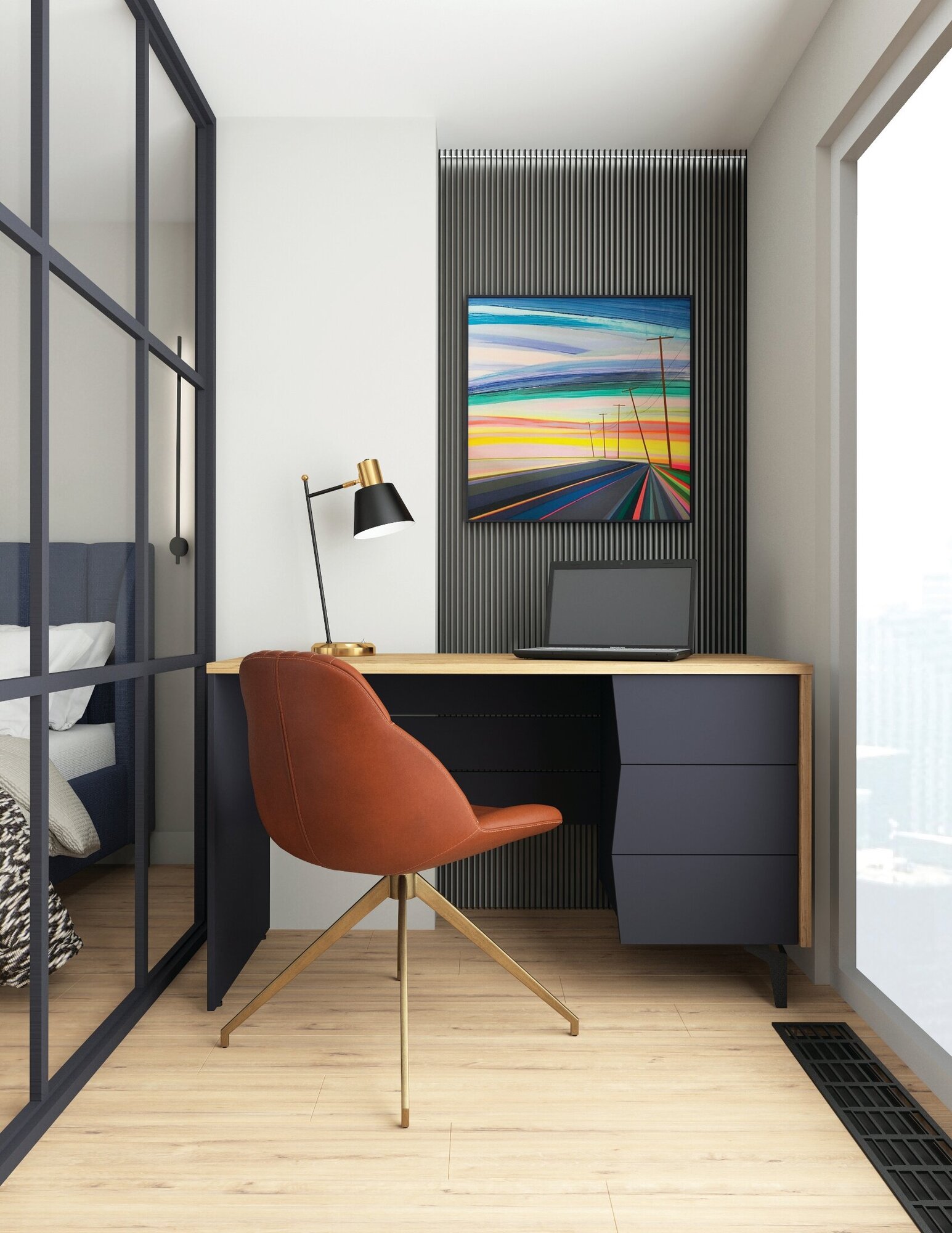 Письменный стол мебельнов "Мадрид", ШхГхВ: 130х60х76 см, цвет: графит/дуб бунратти интересное: