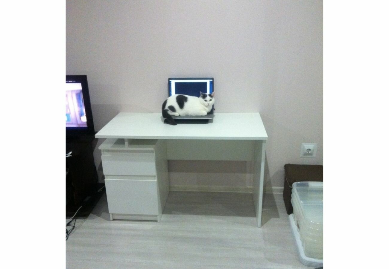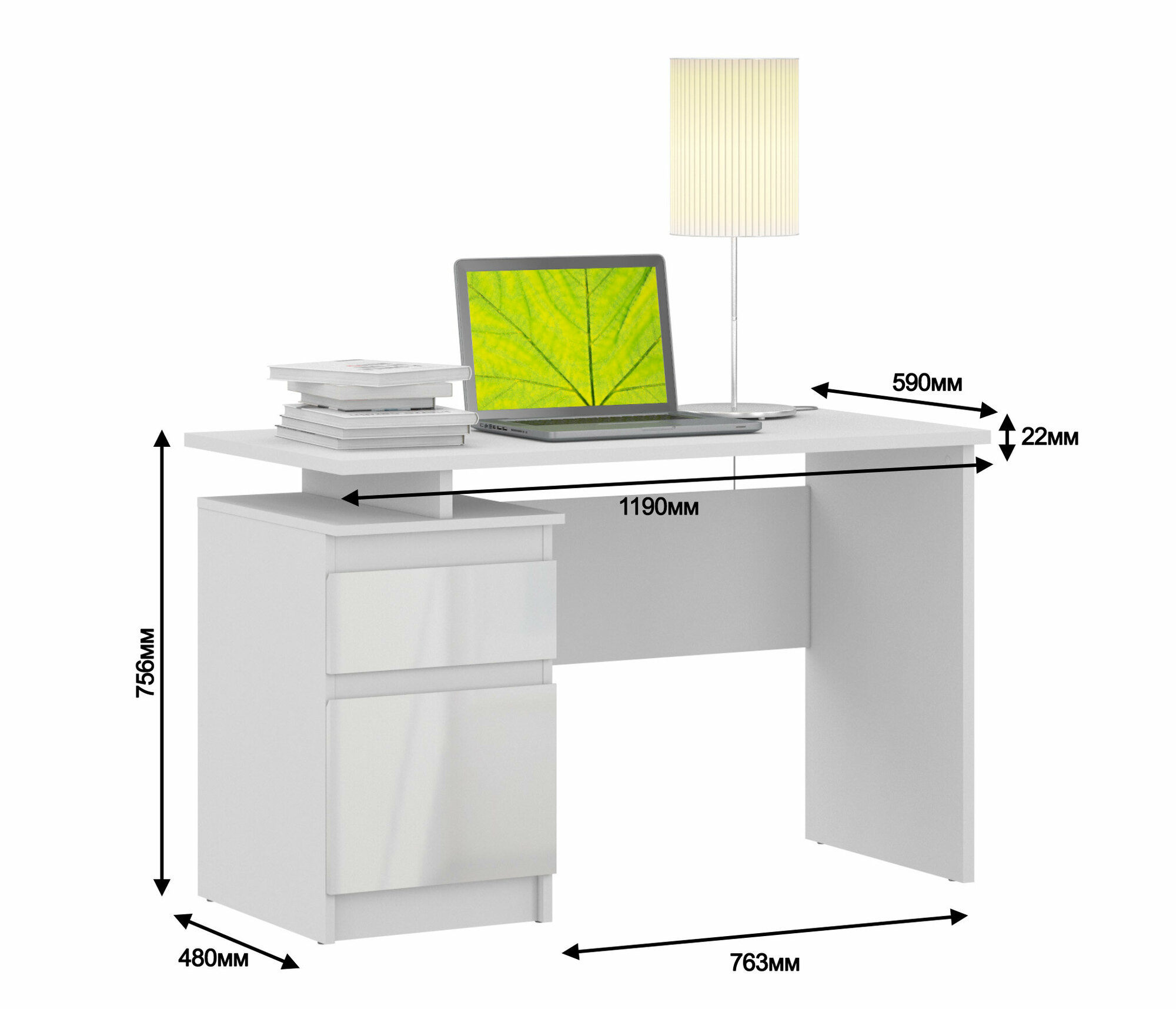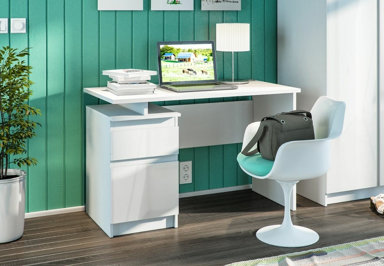 Стол письменный компьютерный рабочий столплит Медея СБ-2513 белый, белый глянец с полкой, с ящиком, с тумбой 119 х 75 х 59 интересное: