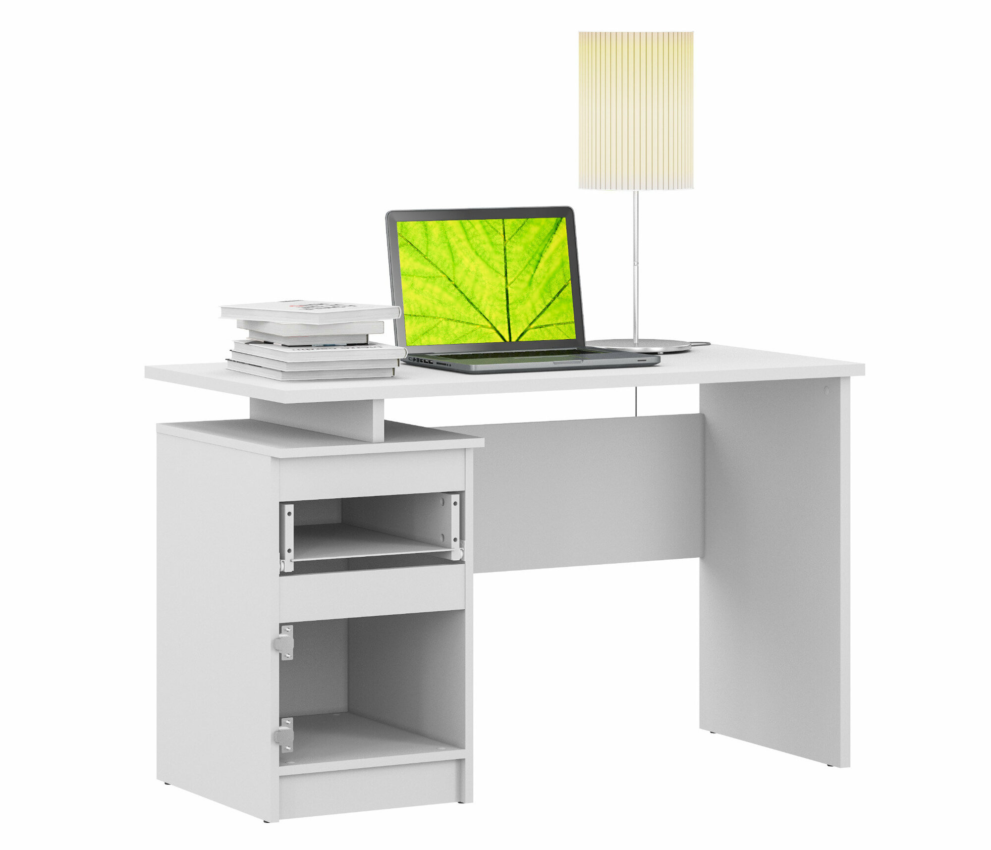 Купить Стол письменный компьютерный рабочий столплит Медея СБ-2513 белый, белый глянец с полкой, с ящиком, с тумбой 119 х 75 х 59