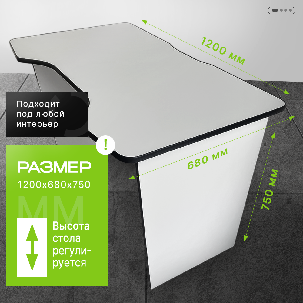Купить Игровой компьютерный стол FLY 120х68х75 белый с черной кромкой