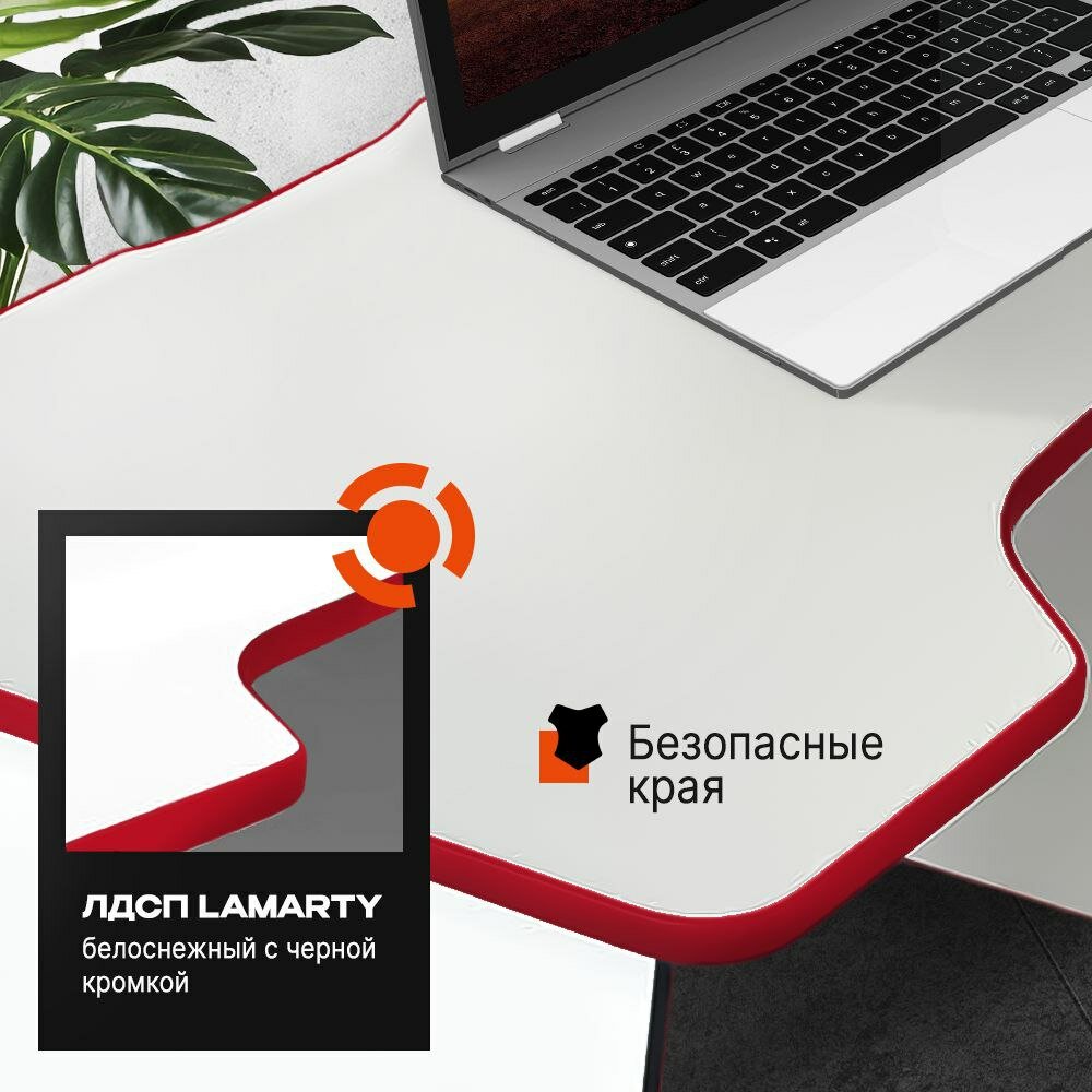 Игровой компьютерный стол SV-Line 120х68х75 белый с красным кантом