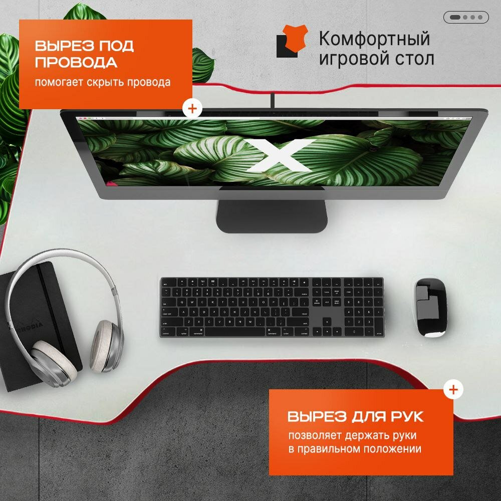 Игровой компьютерный стол SV-Line , 110x68x75, белый с красной каймой