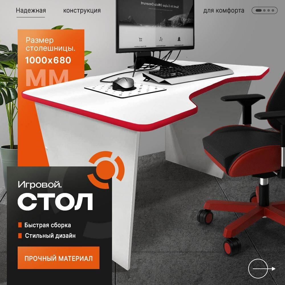 Игровой компьютерный стол SV-Line , 100 х 68 х 75, белый с красным кантом