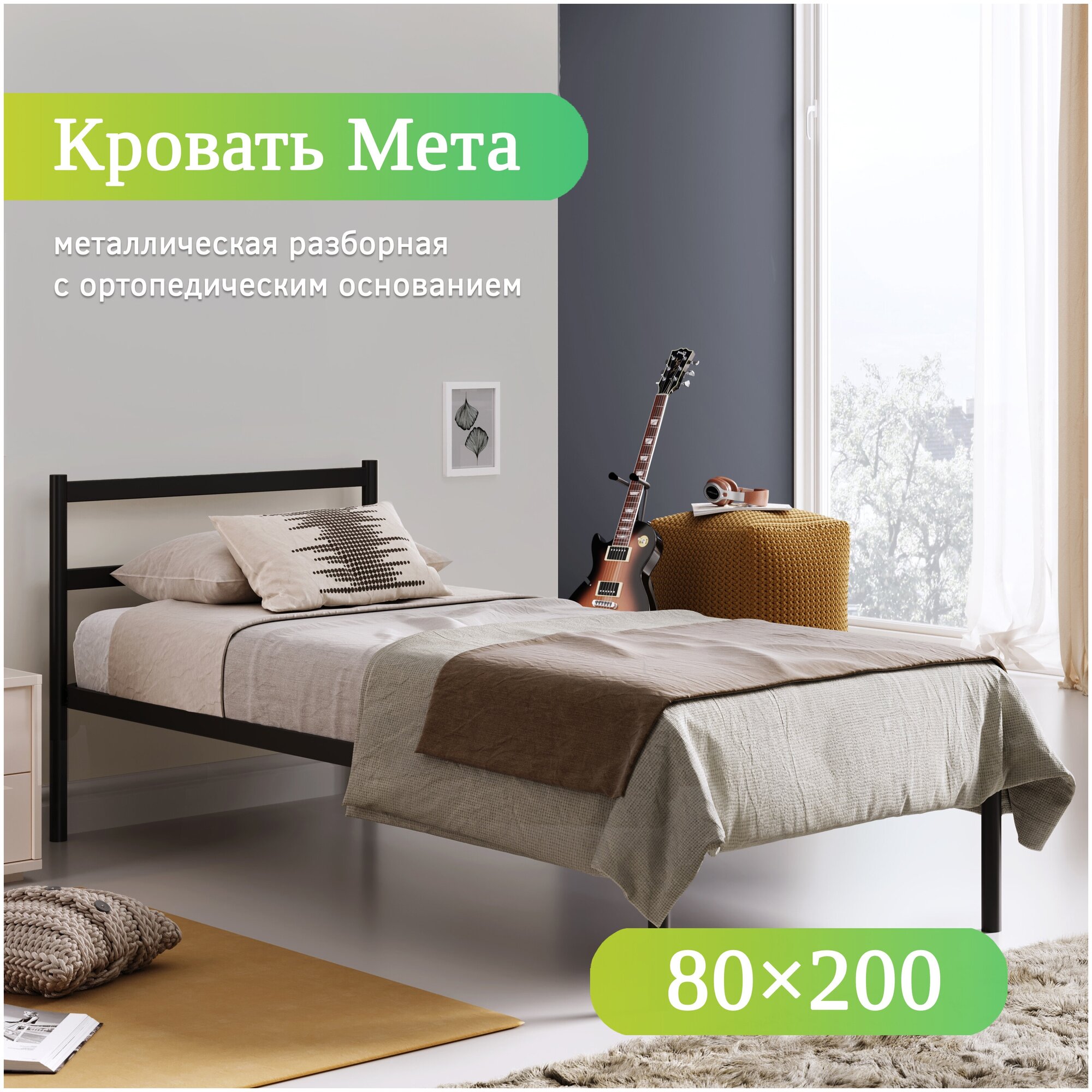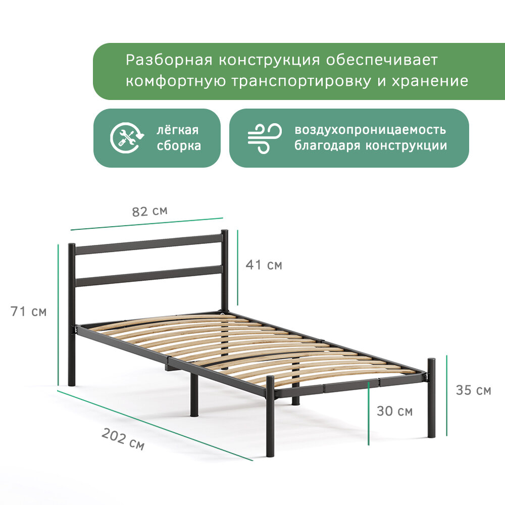 Односпальная кровать металлическая разборная Мета, 80х200 см, черная интересное: