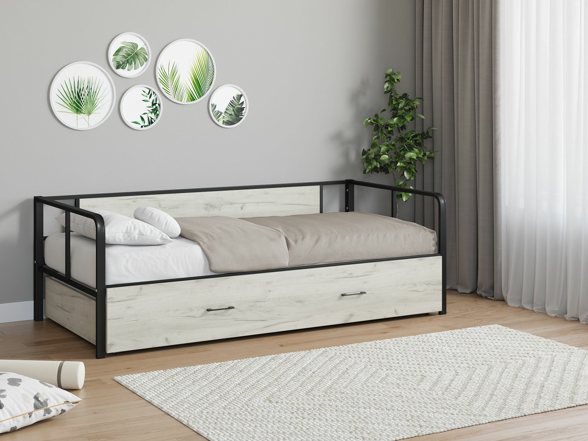 Купить Односпальная кровать Арга Лофт 120 выкатная Черный/Дуб крафт белый