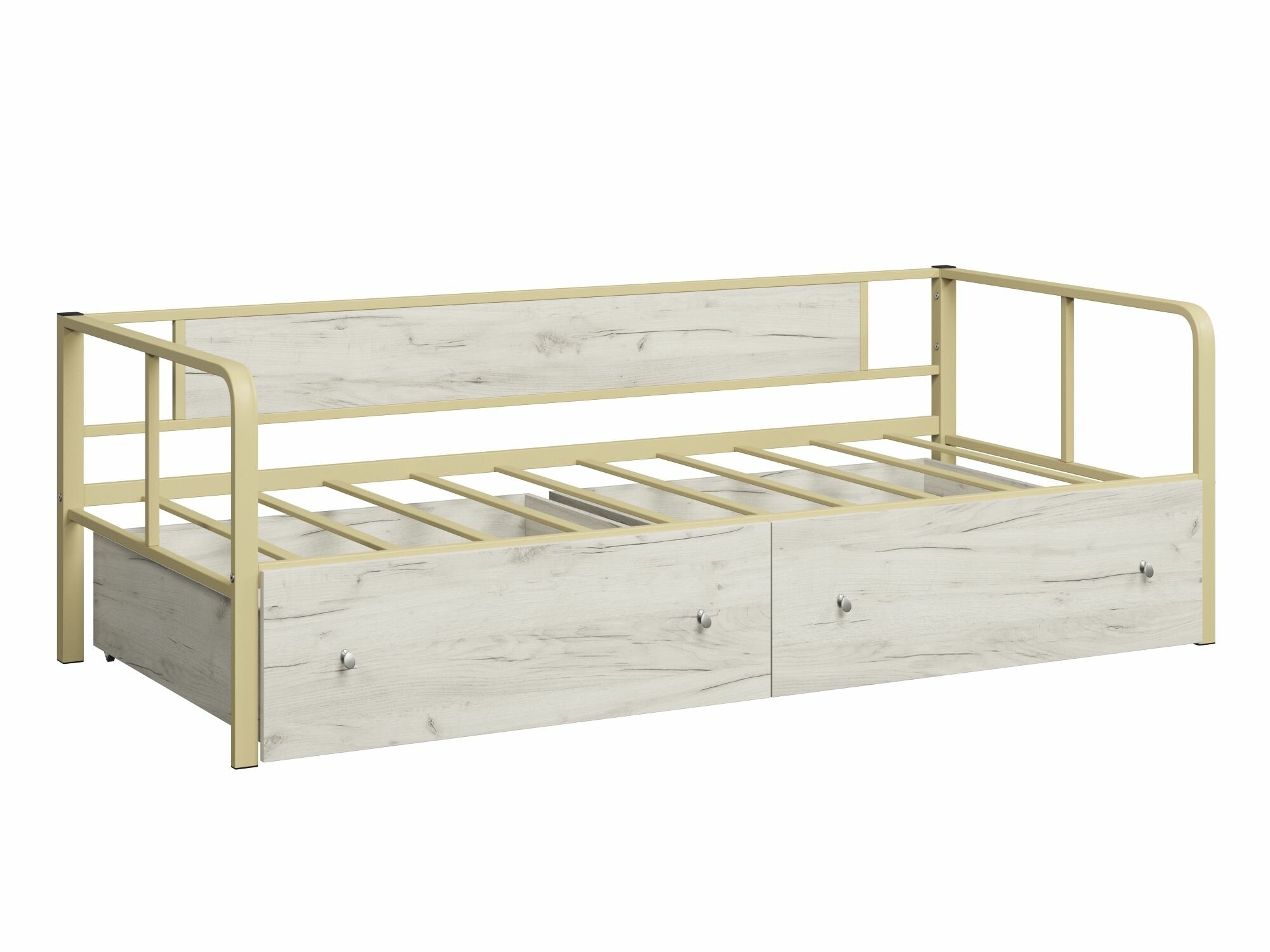 Односпальная кровать Арга Лофт с ящиками Слоновая кость/Дуб молочный