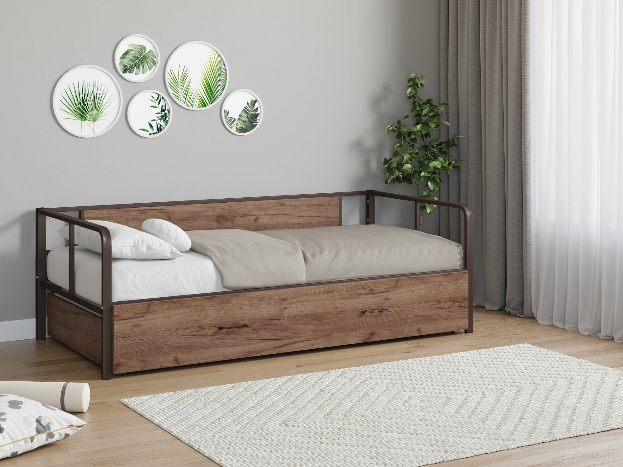 Кровать Арга Лофт 120 выкатная Коричневый/Дуб крафт табак