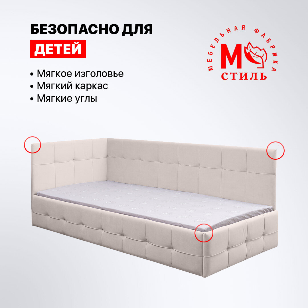 Купить Кровать-диван Банни 200*90 бежевый велюр, с матрасом и ящиком для хранения