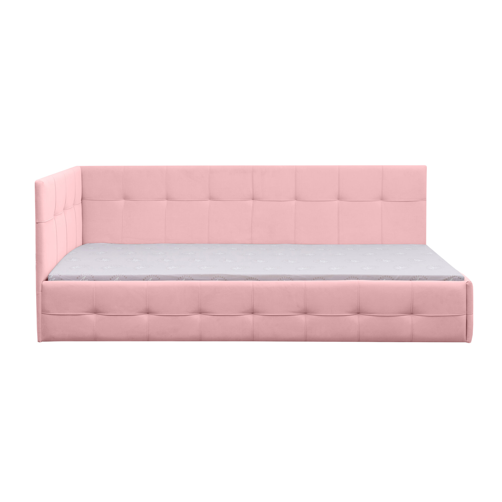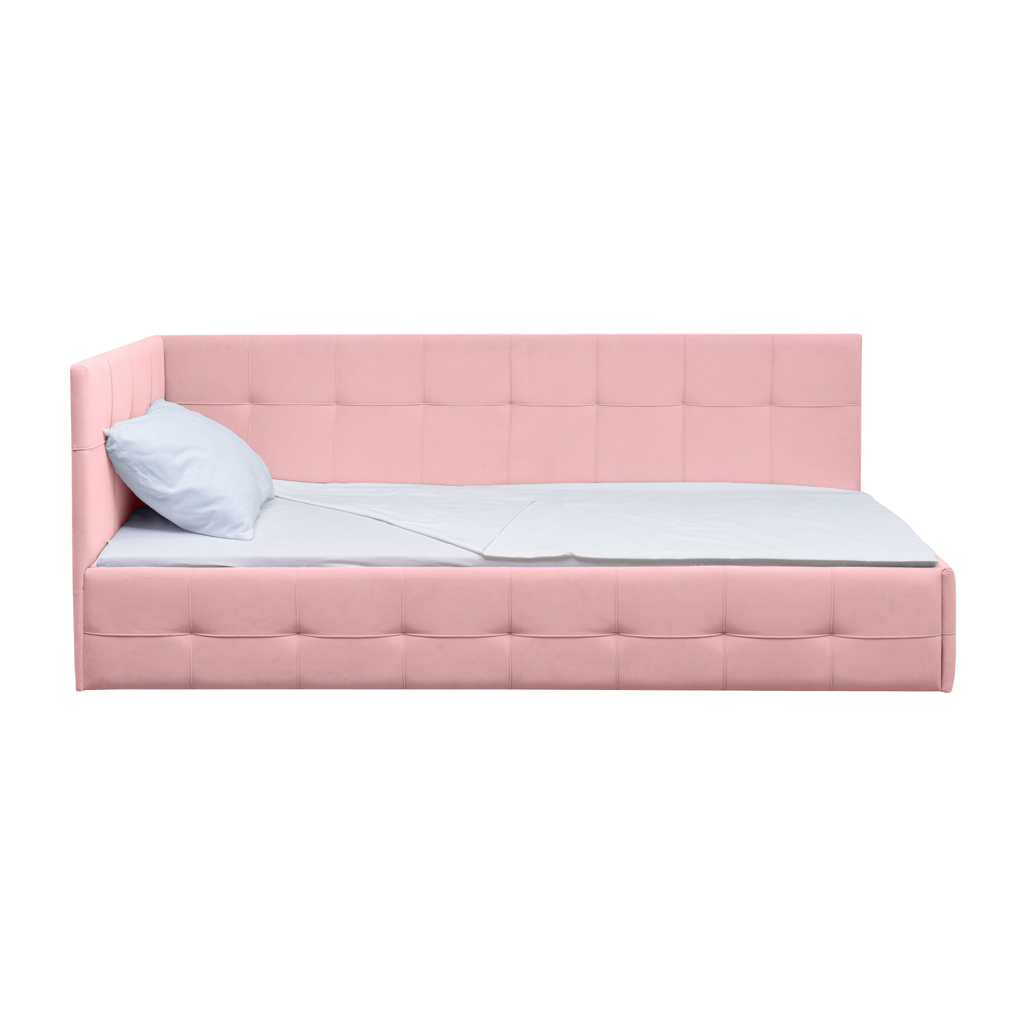Кровать-диван Банни 200*90 розовый велюр, с матрасом и ящиком для хранения