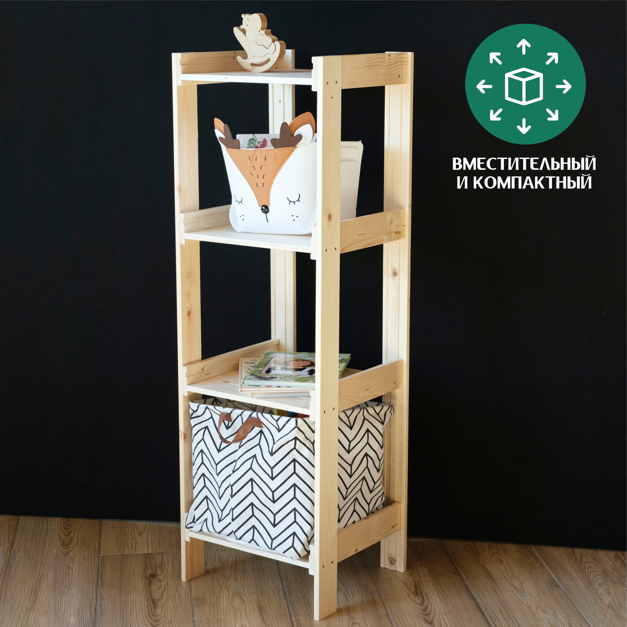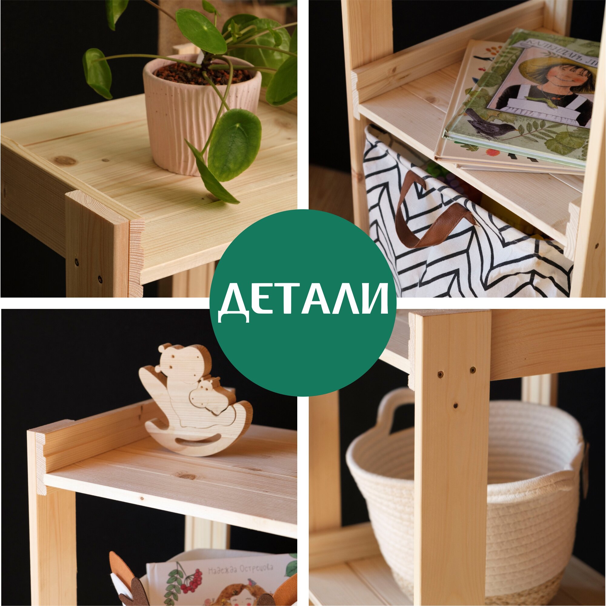 Стеллаж деревянный 4 полки для хранения книг игрушек цветов