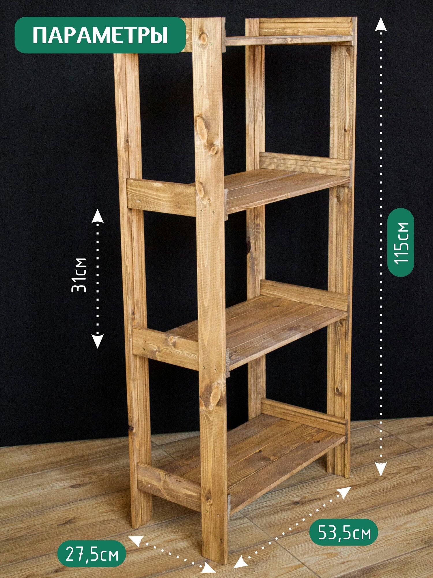 Стеллаж деревянный 4 сплошные полки