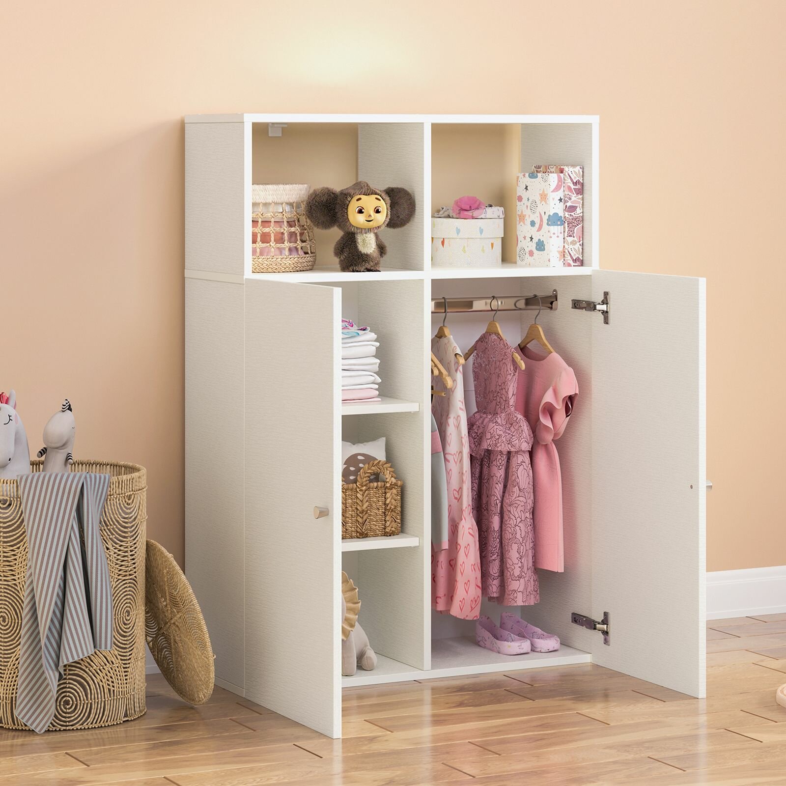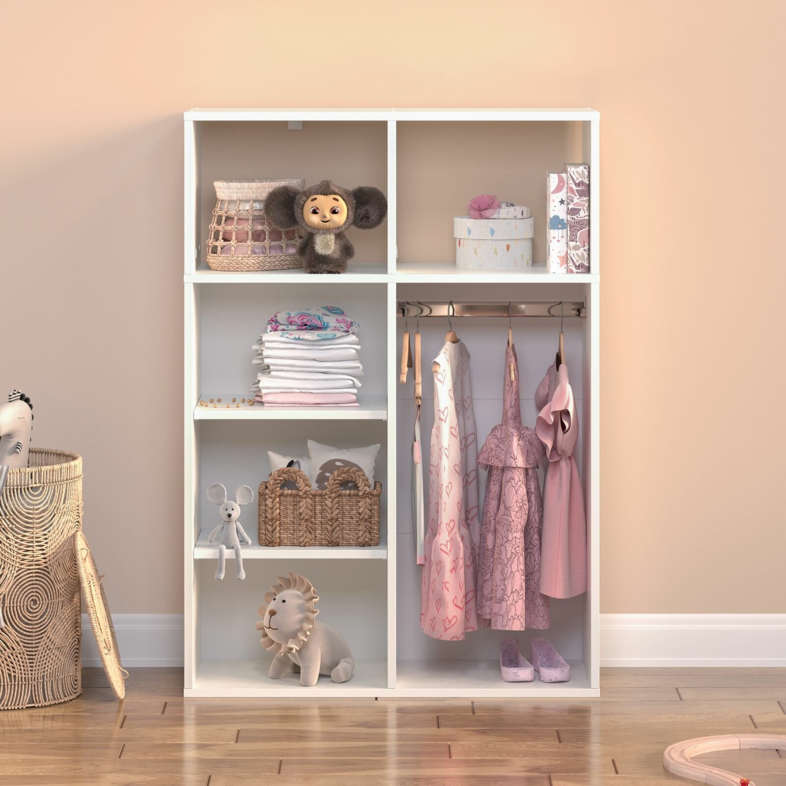 Шкаф деревянный для игрушек, для книг стеллаж детский Белое тиснение