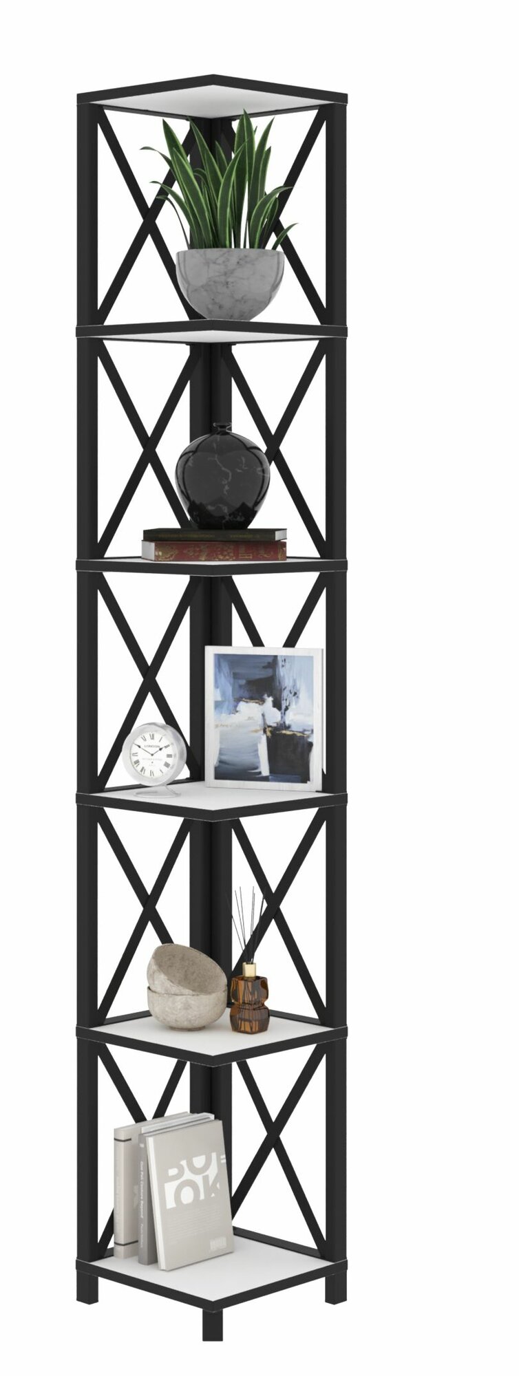 Купить Стеллаж угловой Лофт Слим-6, 182 см белый/ черный
