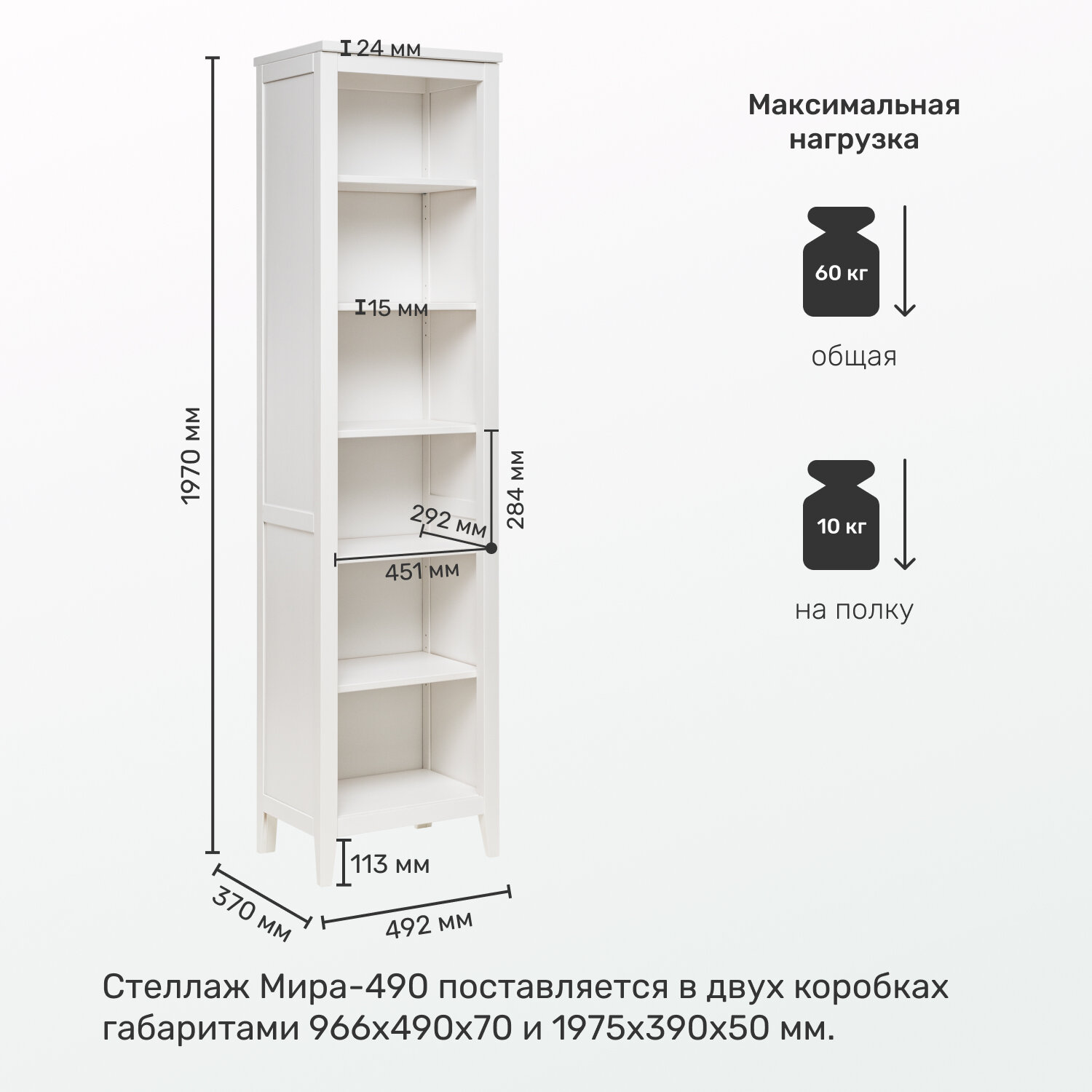 | Максимальная нагрузка на полку | 10 кг |