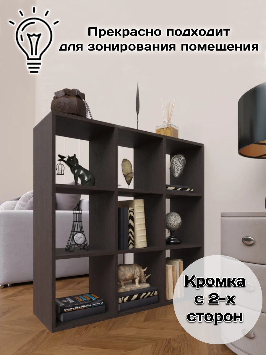 Купить Стеллаж деревянный, 9 секций, 96х96х30 см, венге