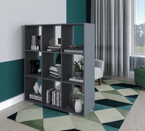 Купить Стеллаж деревянный, 9 секций, 96х96х30 см, чёрный