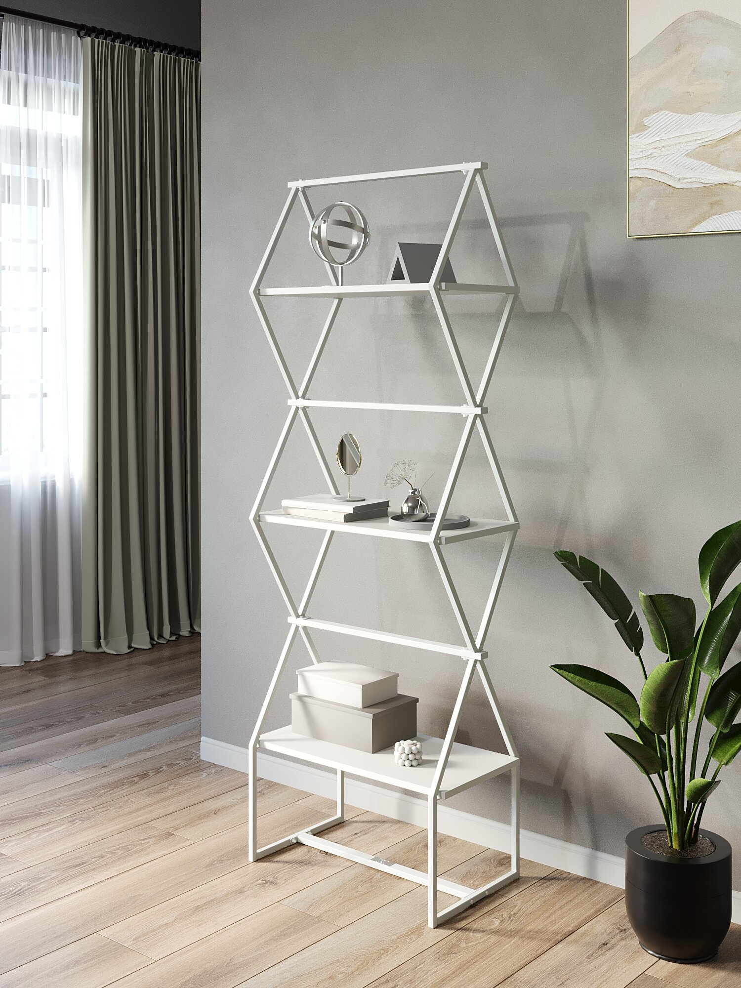 СохранитьСтеллаж для книг KM LOFT Ромбо стSL белый/белый лофт для дома в гостинную перегородка интересное: