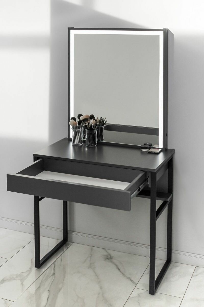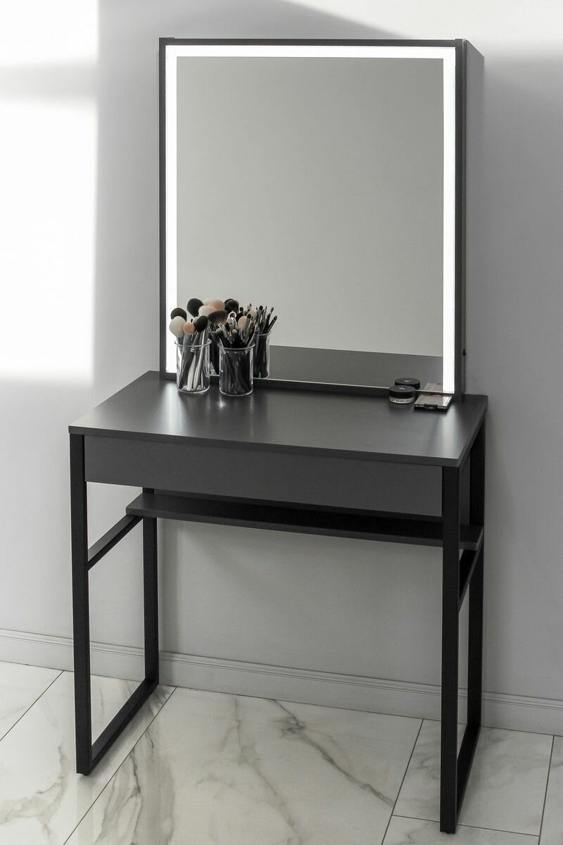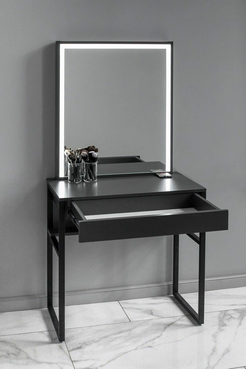 Туалетный столик черный с LED подсветкой на металлокаркасе LOFT