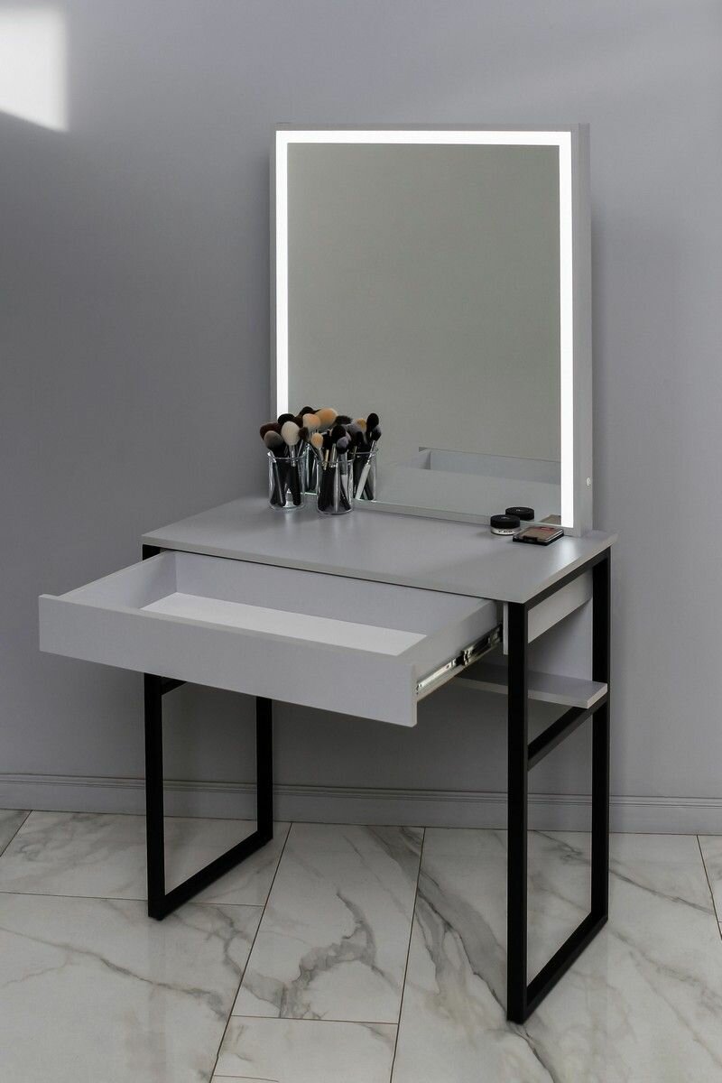 Туалетный столик серый с LED подсветкой на металлокаркасе LOFT интересное: