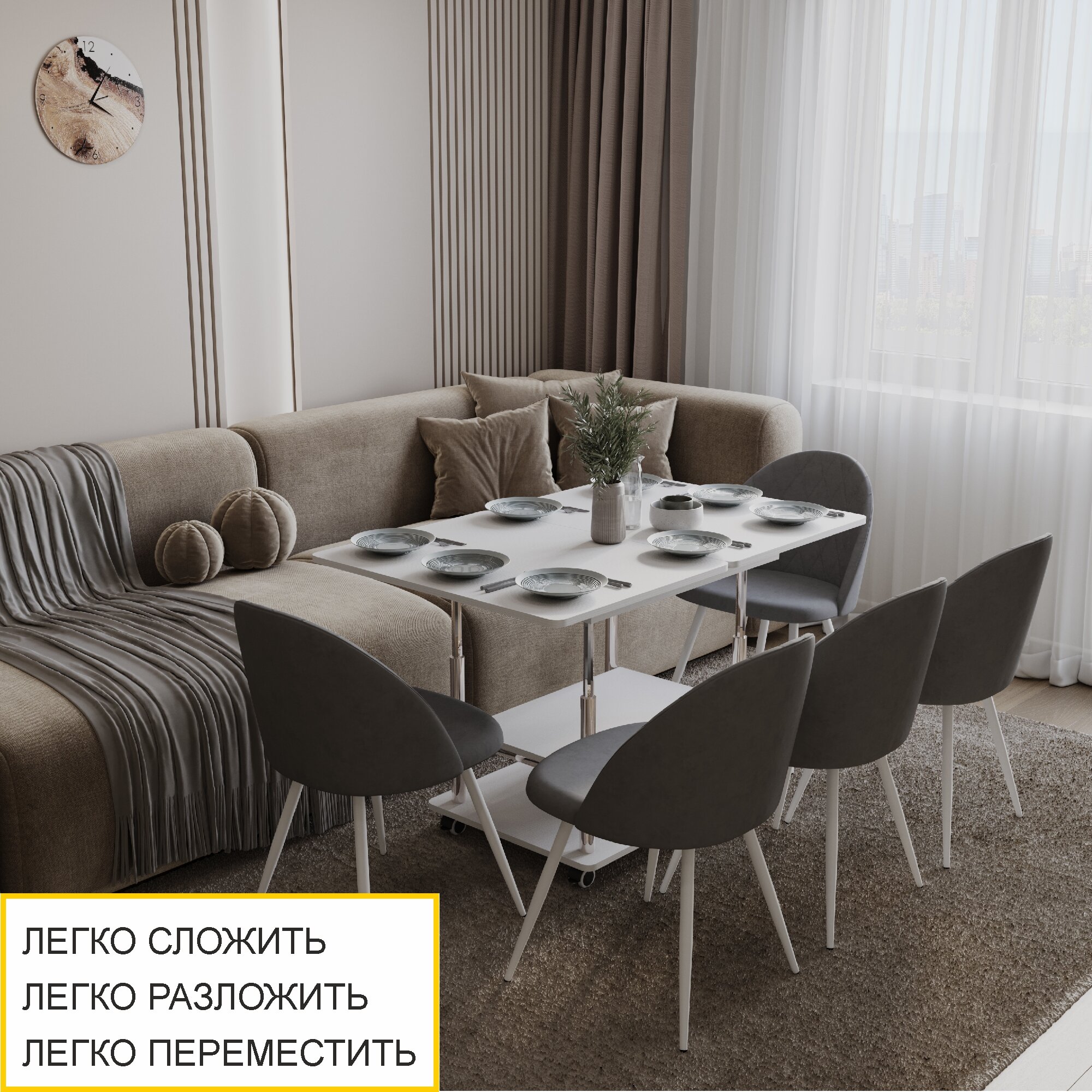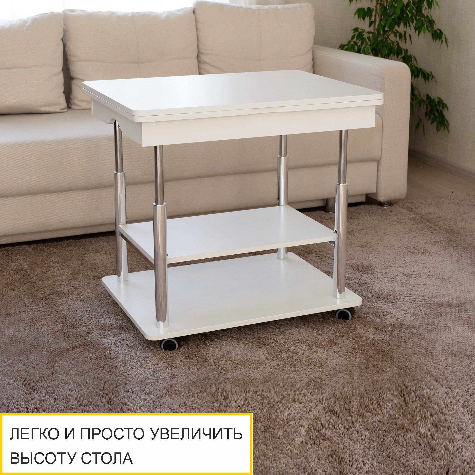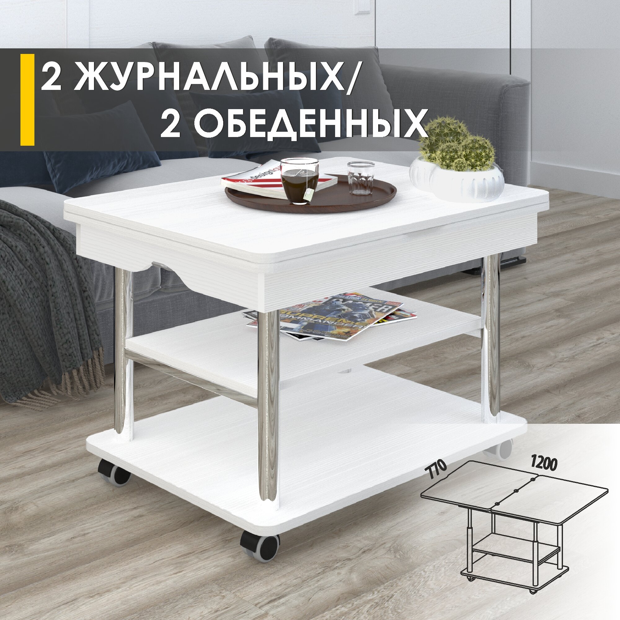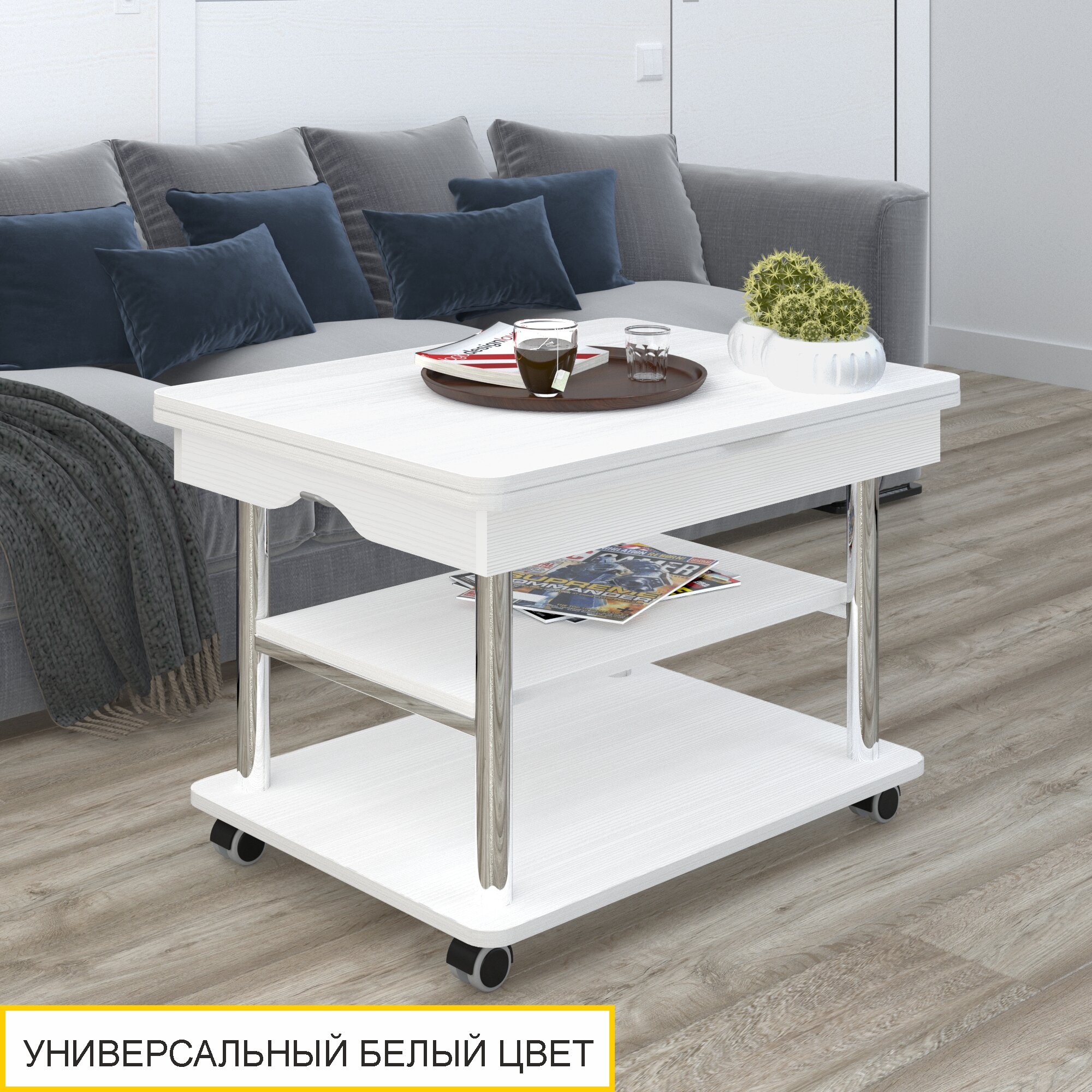 Журнальный стол-трансформер Рим 10.2 (01) Белый шпон/Хром, 77х60х53 см интересное: