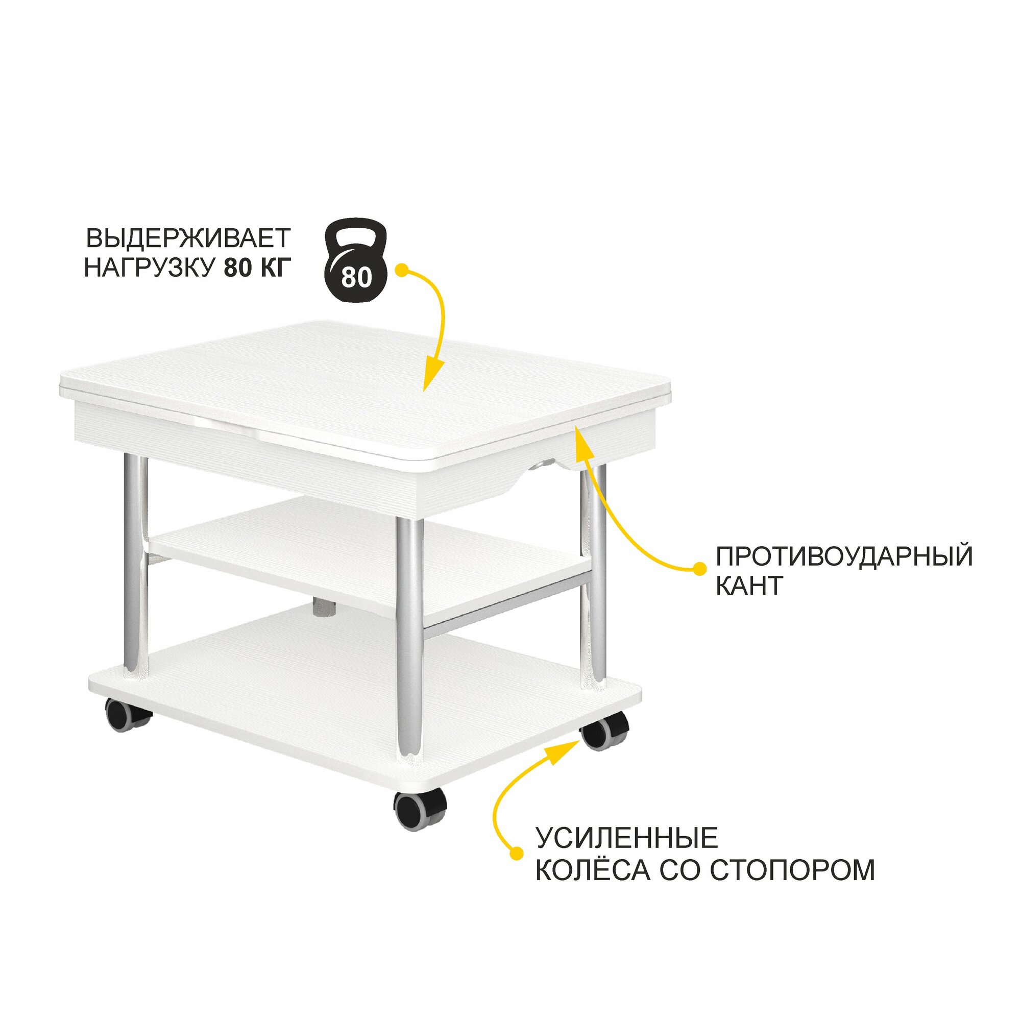 | Особенности | на колесиках, с полкой |