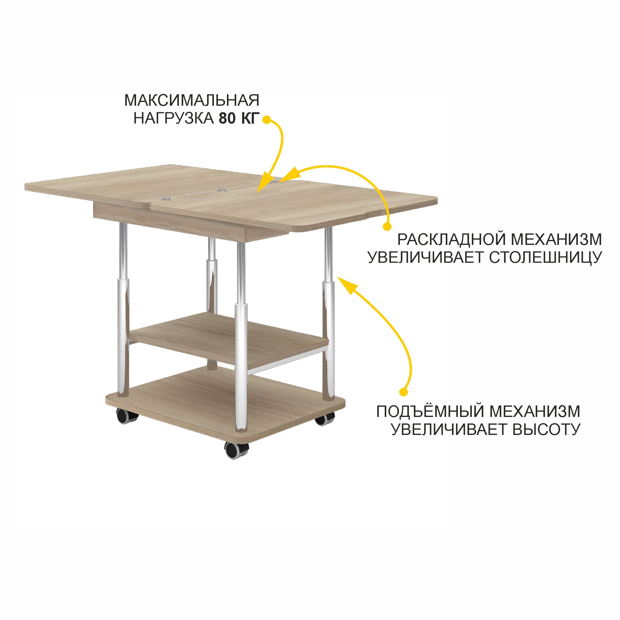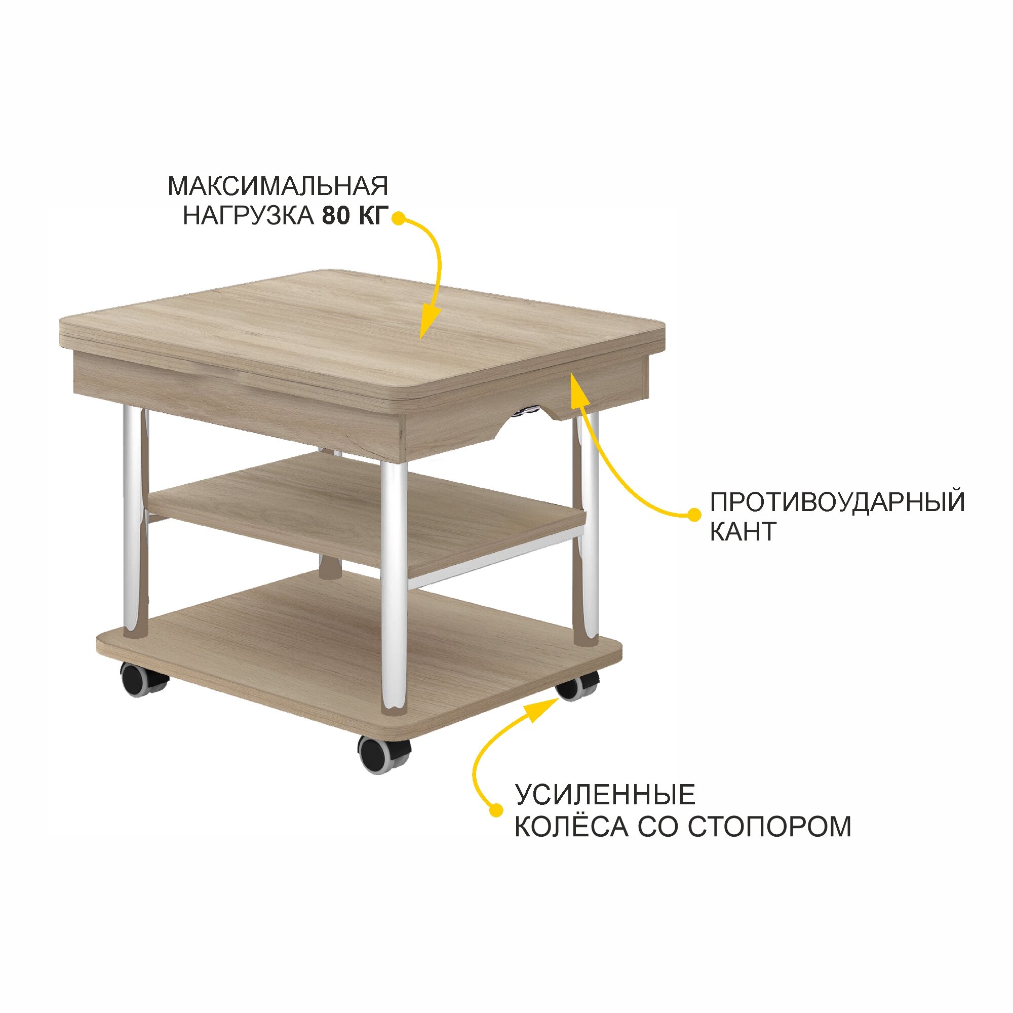| Особенности | на колесиках, с полкой |