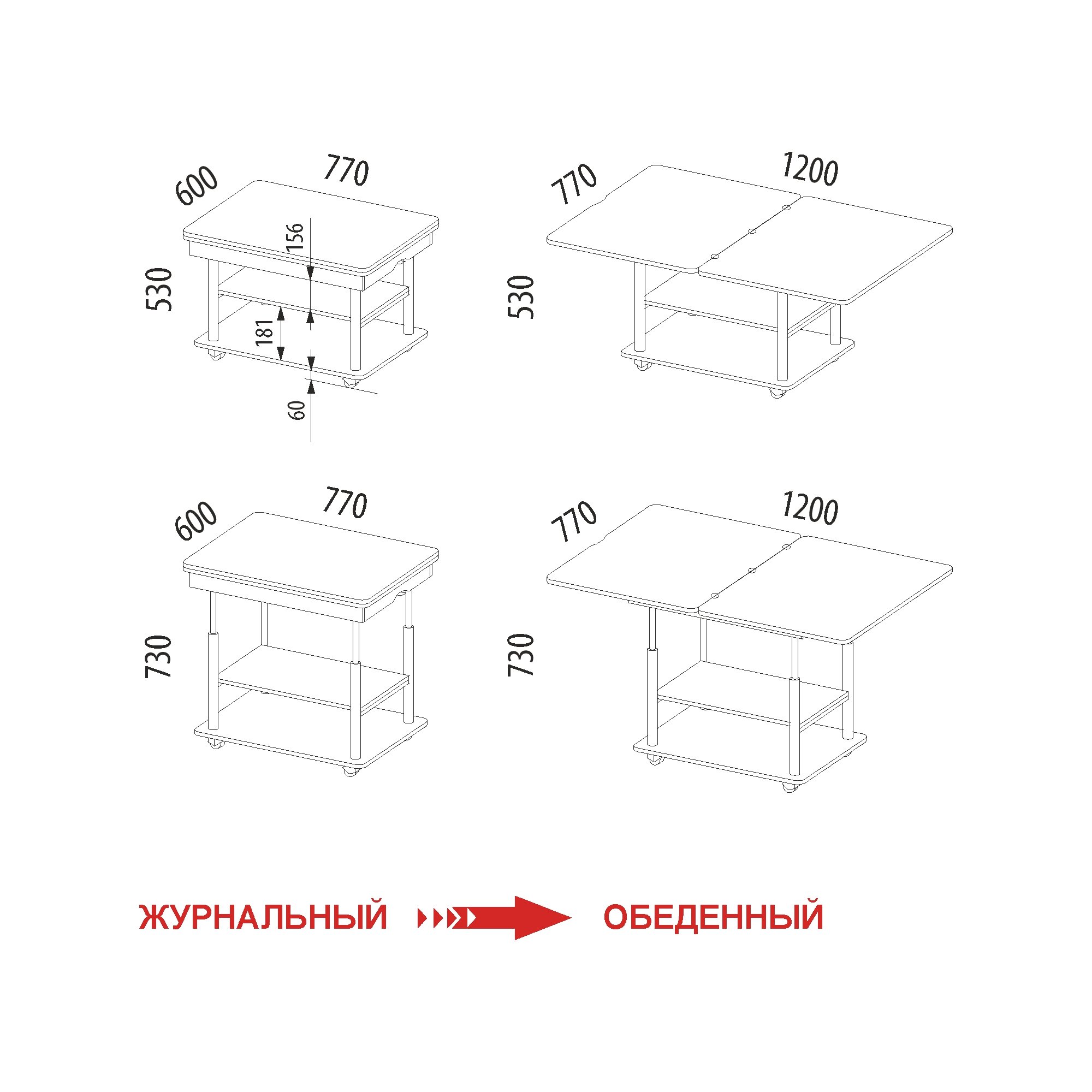 | Особенности | на колесиках, с полкой |