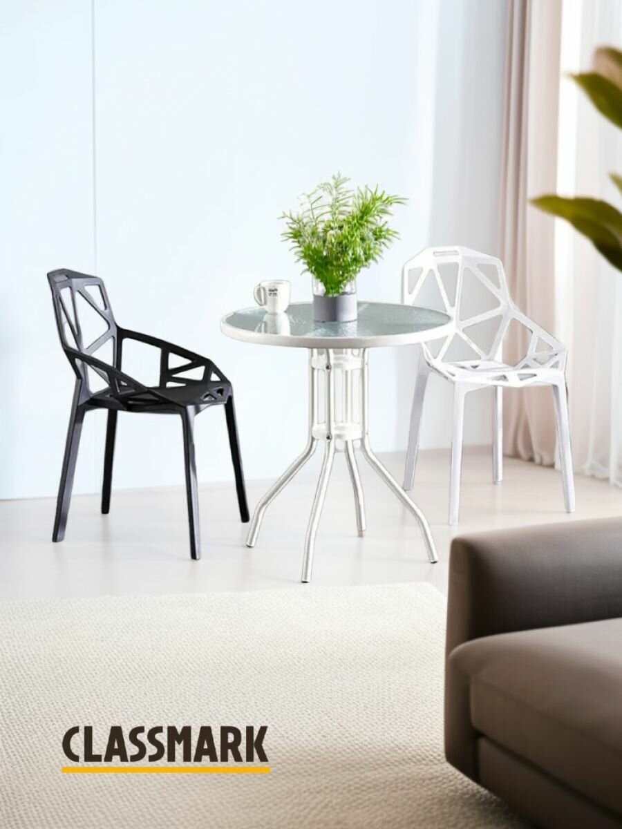 Стол кухонный и журнальный стеклянный обеденный Classmark 60х70 см кофейный или садовый круглый, закаленное стекло, сталь, для дома и дачи, белый интересное: