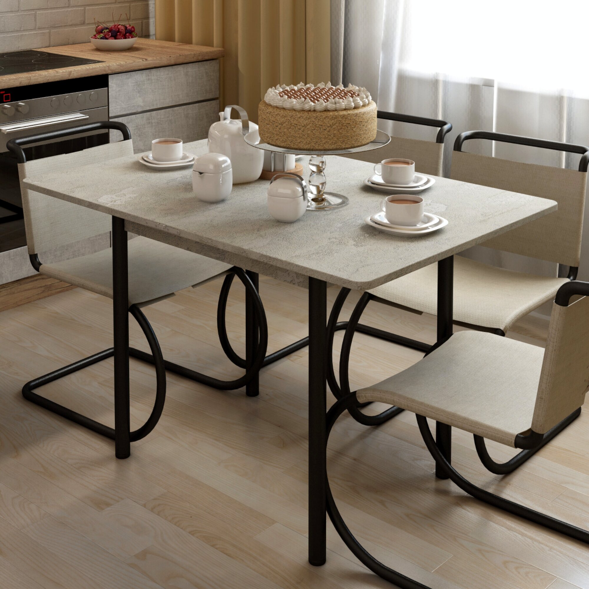 | Дополнительная информация | В комплекте столешница раскладная из ЛДСП 1 шт, ножки металлические крашеные 4 шт |