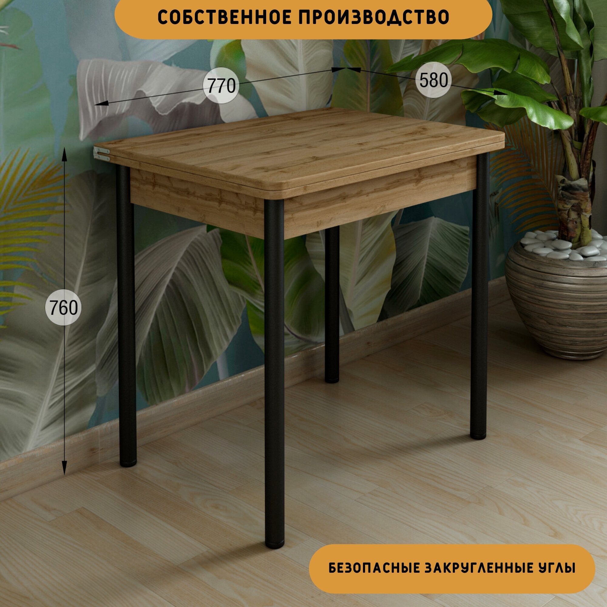 Стол обеденный раскладной из ЛДСП, 58х77 см, высота 76 см, цвет Дуб вотан интересное: