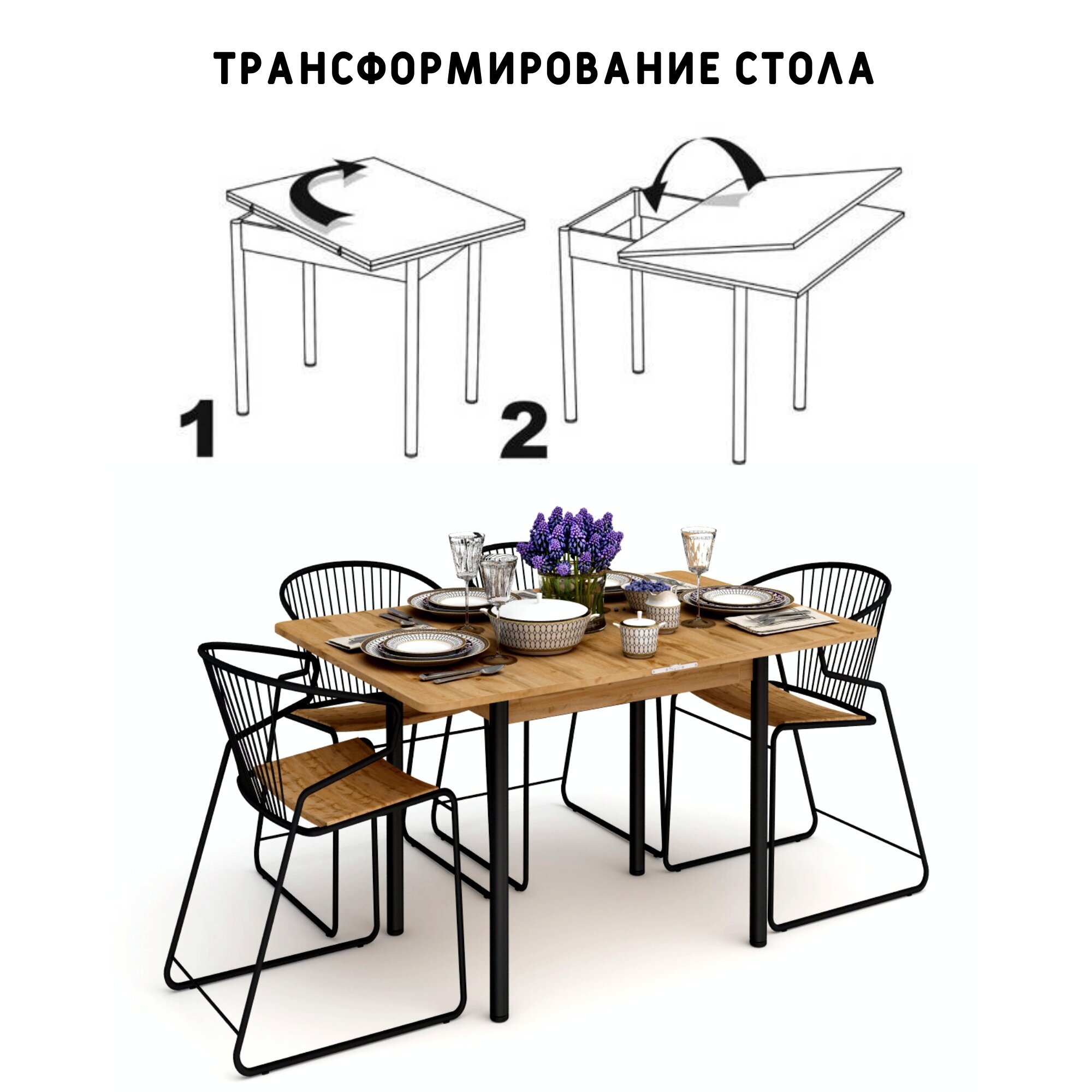 | Дополнительная информация | В комплекте столешница раскладная из ЛДСП 1 шт, ножки металлические крашеные 4 шт |