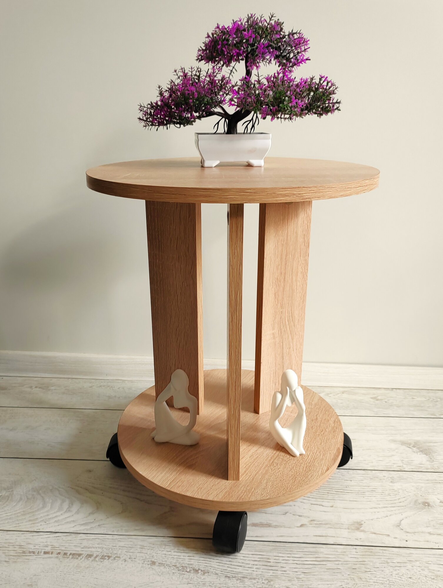 Журнальный столик на колесиках "ЭЛ-МА", круглый, дуб сонома интересное: