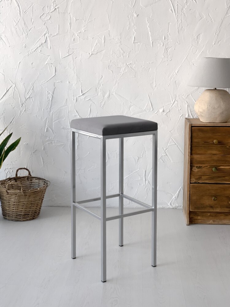 Купить Традат-78 серебро vel-32 Табурет барный металл серебро, велюр темно-серый