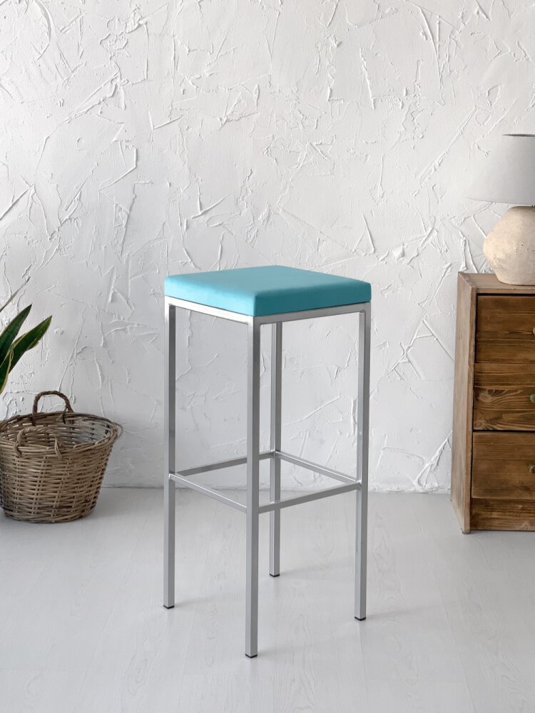 Купить Традат-78 серебро vel-44 Табурет барный металл серебро, велюр бирюзовый